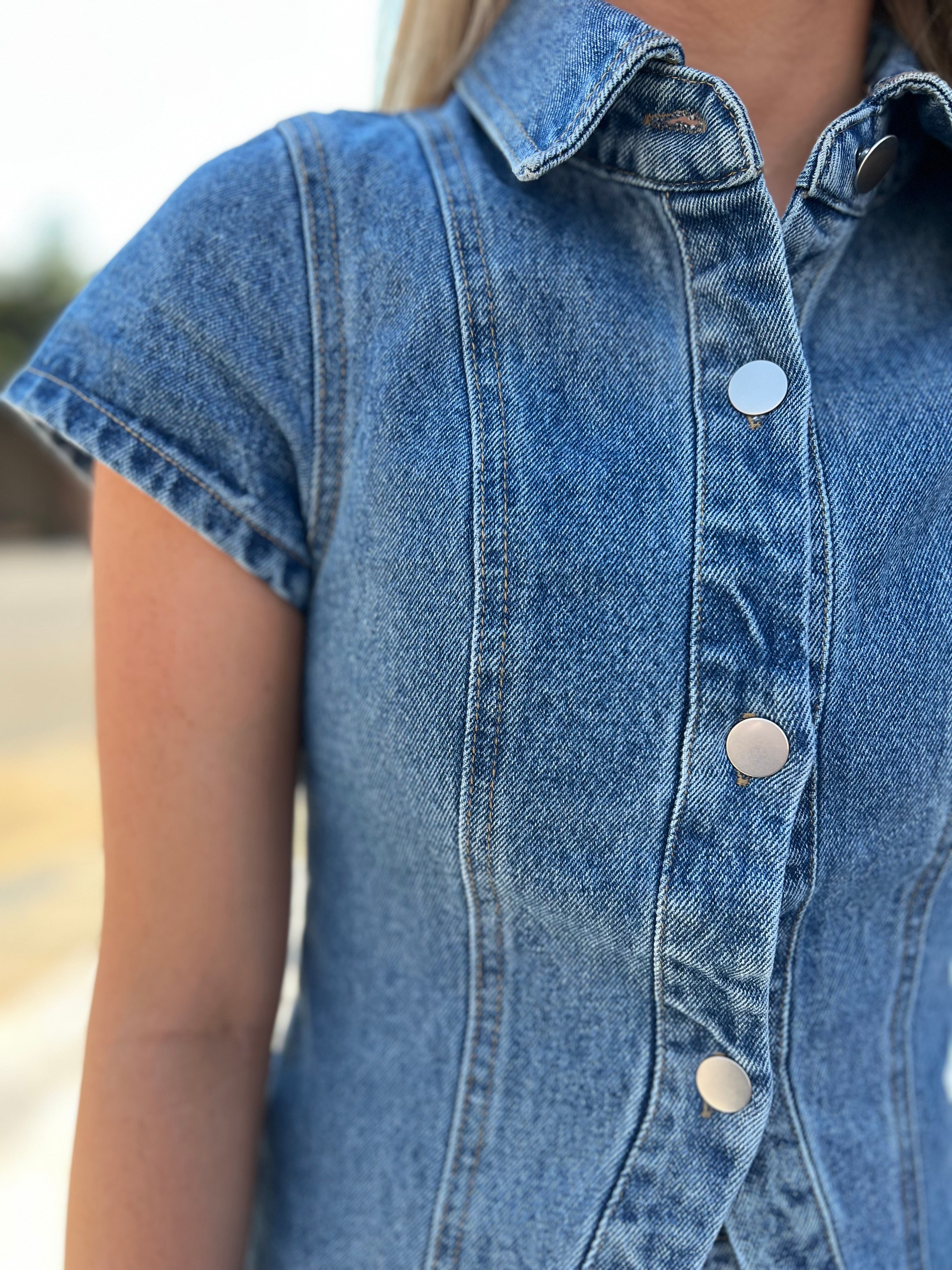 BUTTON FRONT DENIM TOP