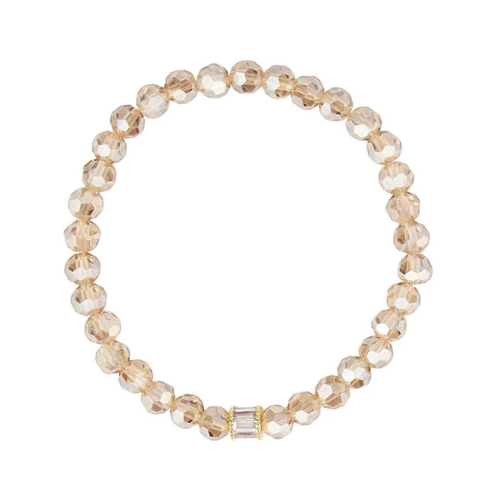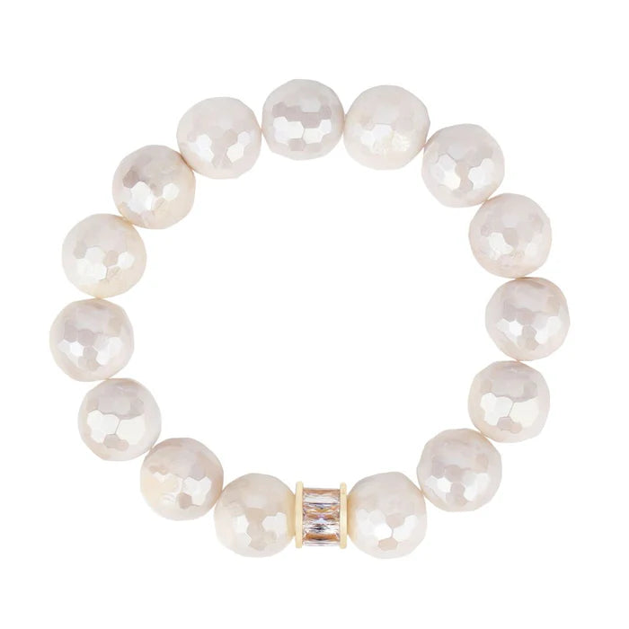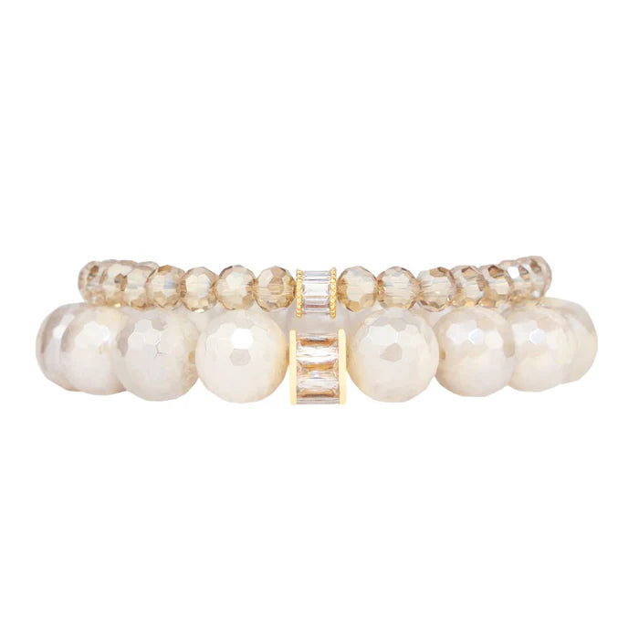 Elevate your wrist with our Capiz Bracelet Set, inspired by the elegance of mother of pearl. The faceted Capiz-like beads and taupe crystals, finished with a smokey rondelle, make a stunning statement. Handcrafted in the US, this set reminds us to embrace harmonious combinations in life.
