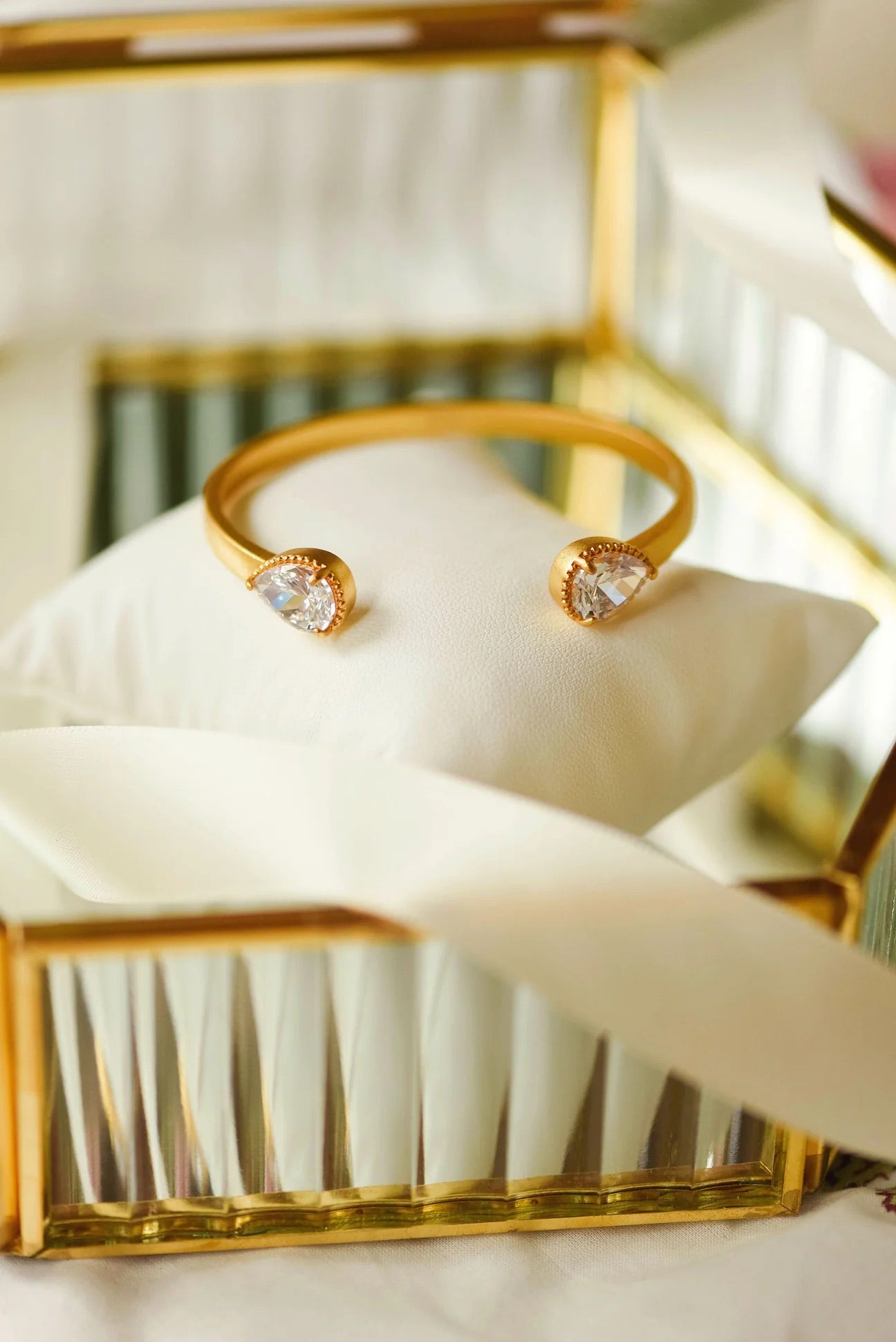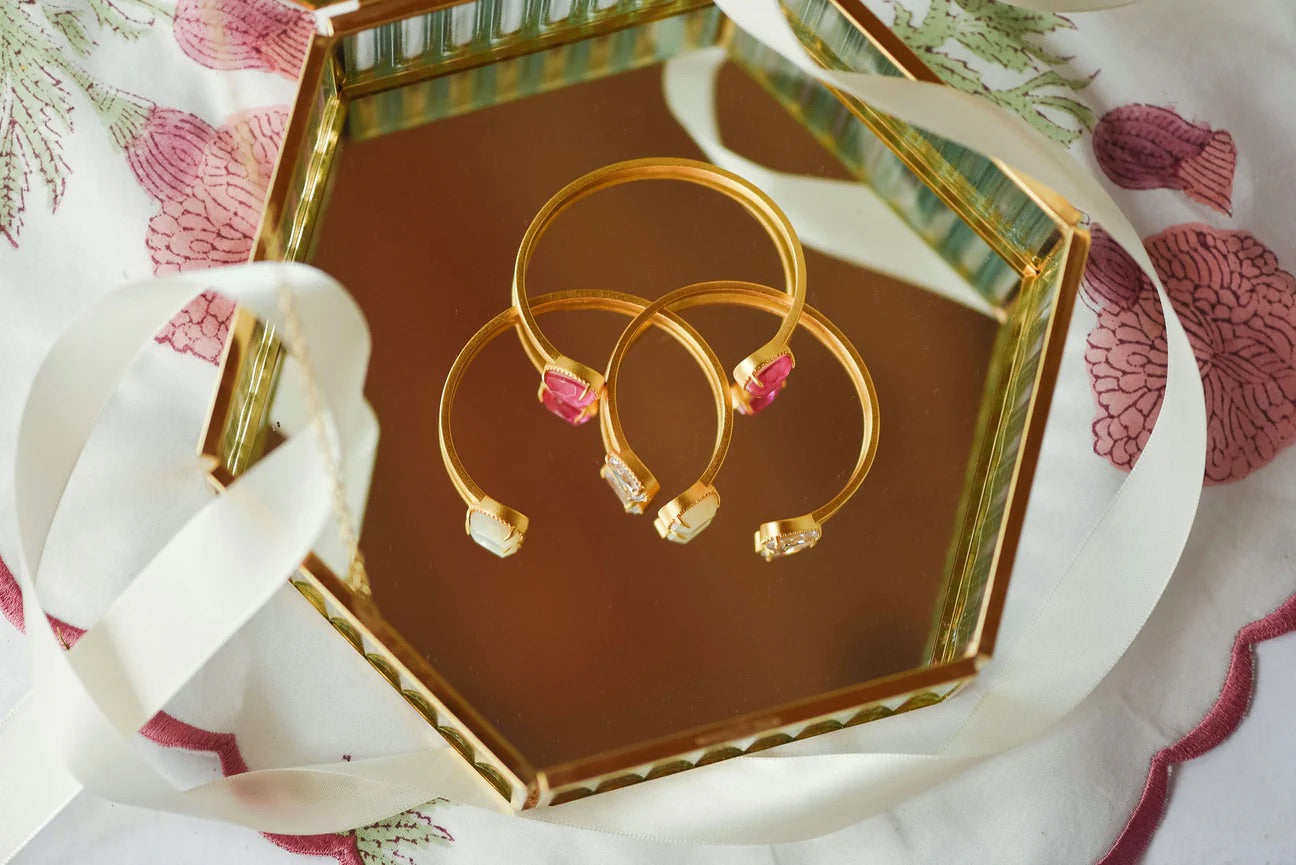 Elevate your style with the PEYTON CUFF BY TJ. The matte gold finish and adjustable design make it perfect for any wrist. The pear-shaped stones on the ends add a touch of elegance. Mix and match with other TJ jewelry to create a unique look. Passionately crafted by Tatum James Designs.
