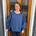 Experience ultimate comfort with the Unwind Sweatshirt in navy blue. This oversized long-sleeve sweatshirt features subtle trim details that add a touch of style to its cozy, soft fabric. Perfect for relaxing at home or layering on cooler days, it combines warmth and effortless fashion for your everyday wardrobe.