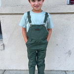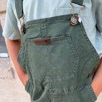 Experience the ultimate comfort and style with our Boys Harvest Overalls in Olive by Properly Tied! Stay organized with a front pouch pocket and side pockets while easily adjusting the straps for the perfect fit. Don't miss out on this must-have for any active young boy!
