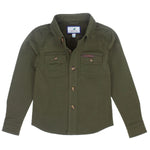 Introduce the BOYS HARVEST WORKSHIRT to your little man's wardrobe! Made of a heavy olive green fabric, it features a button down design and 2 front chest pockets. Perfect for layering over a tee or worn alone for warmth. This is sure to become his go-to favorite shirt!