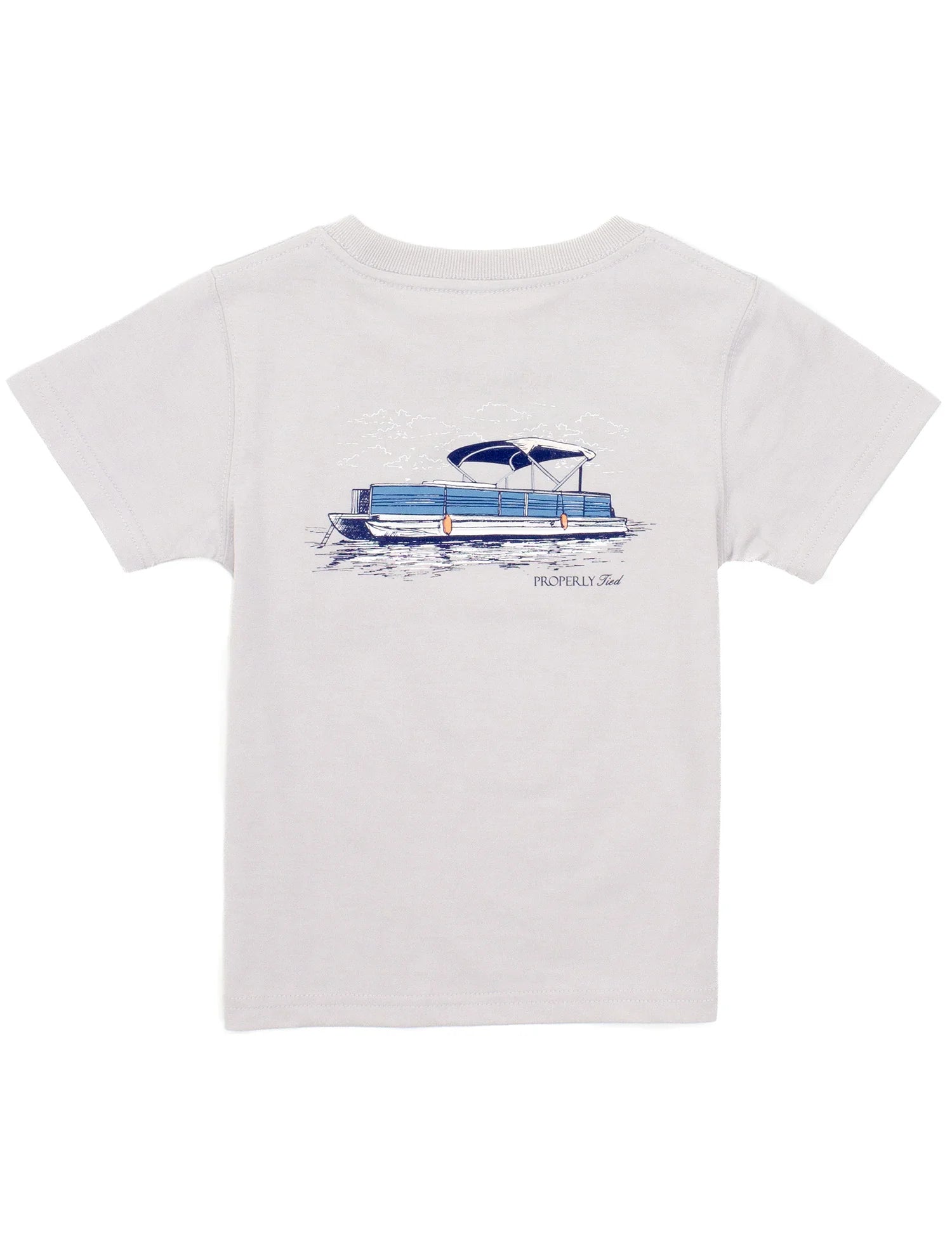 Celebrate lake life with the BOYS PARTY BARGE TEE BY PROPERLY TIED! This ice grey shirt features a front pocket logo and short sleeves, making it perfect for warm days on the water. Spread the love for the lake with this must-have tee.