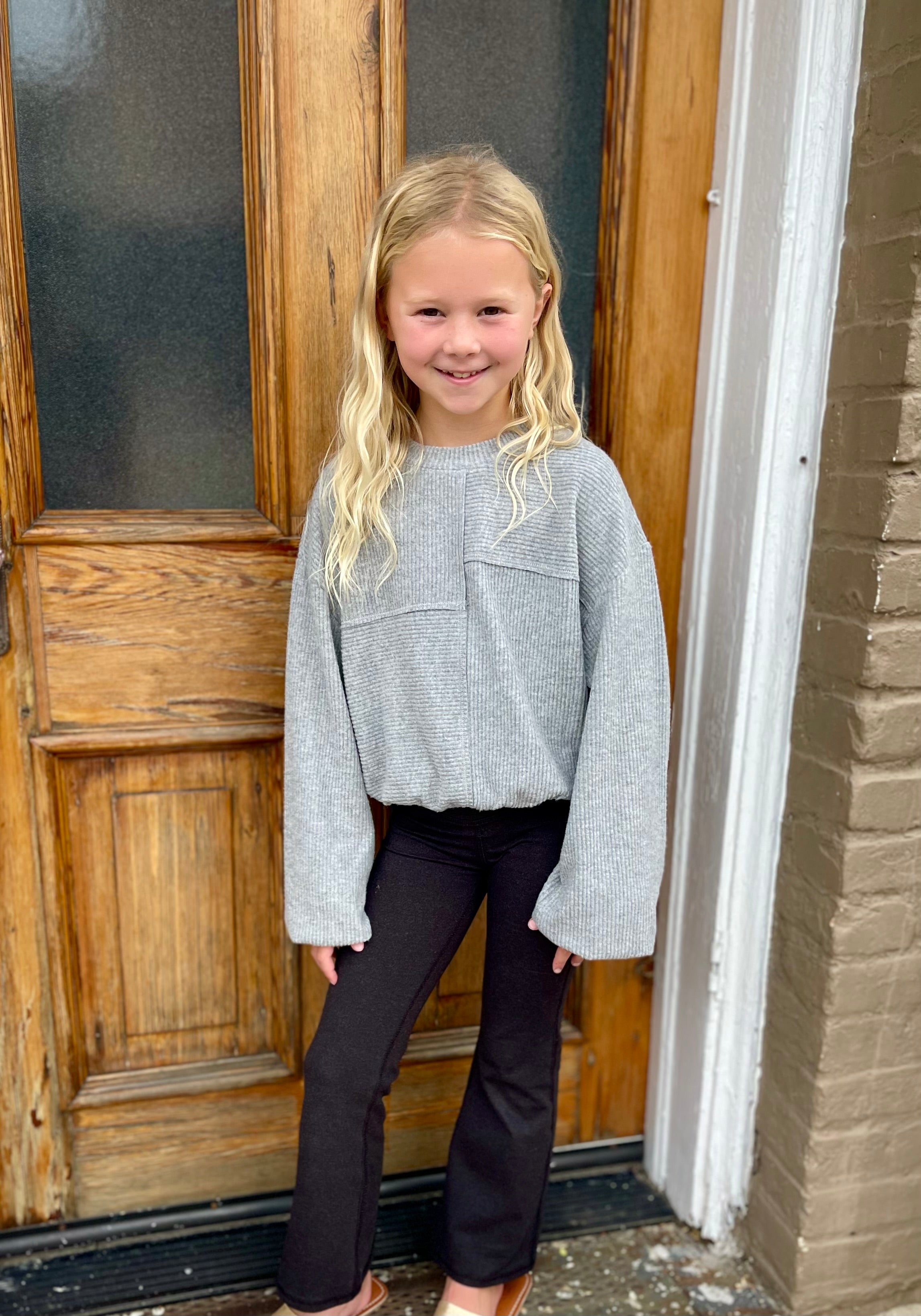Elevate your tween's wardrobe with the HACCI RIB DOLMAN TOP by KAVEAH. This light heather grey top offers both comfort and style, perfect for pairing with leggings or jeans for any occasion. Don't miss out on this versatile and trendy piece for your fashion-forward tween!