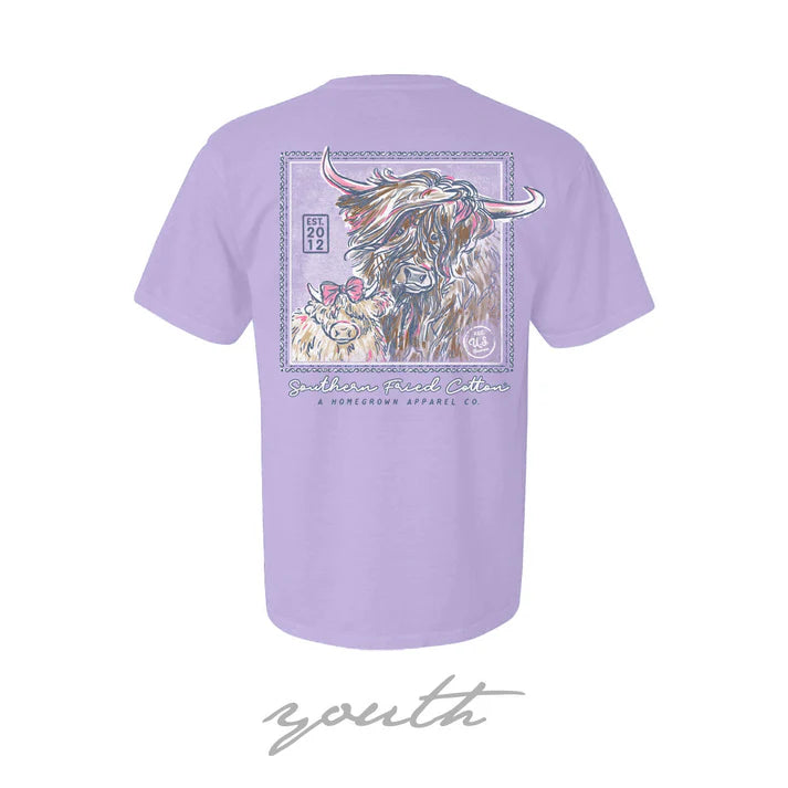 Celebrate the special bond with the MOM & ME YOUTH tee in orchid, featuring an adorable Highland calf nestled against its mama. Perfect for kids who adore country charm and heartfelt moments, this soft, comfortable shirt brings everyday sweetness to any outfit. Let your little one wear love and comfort together in this charming design.