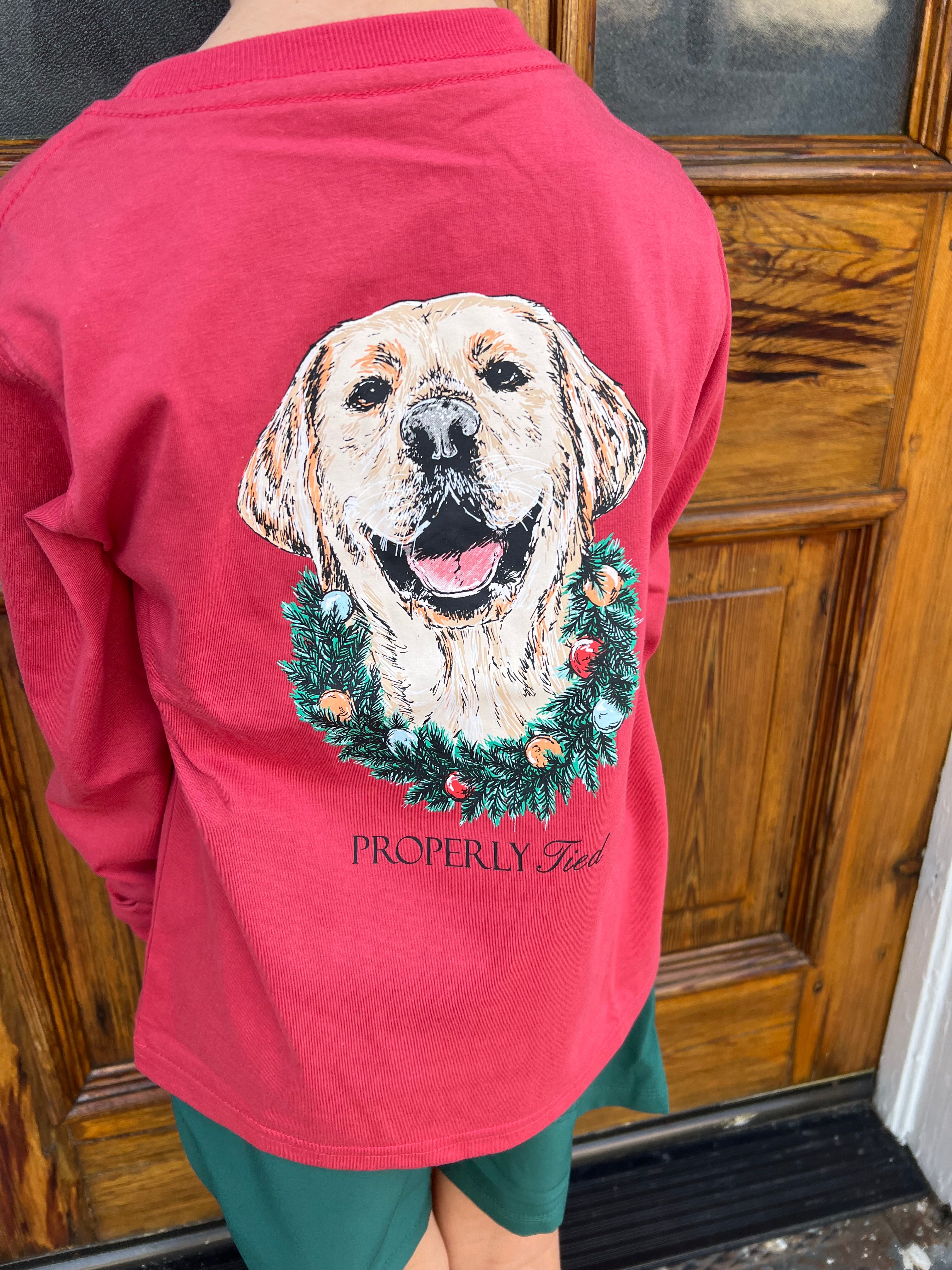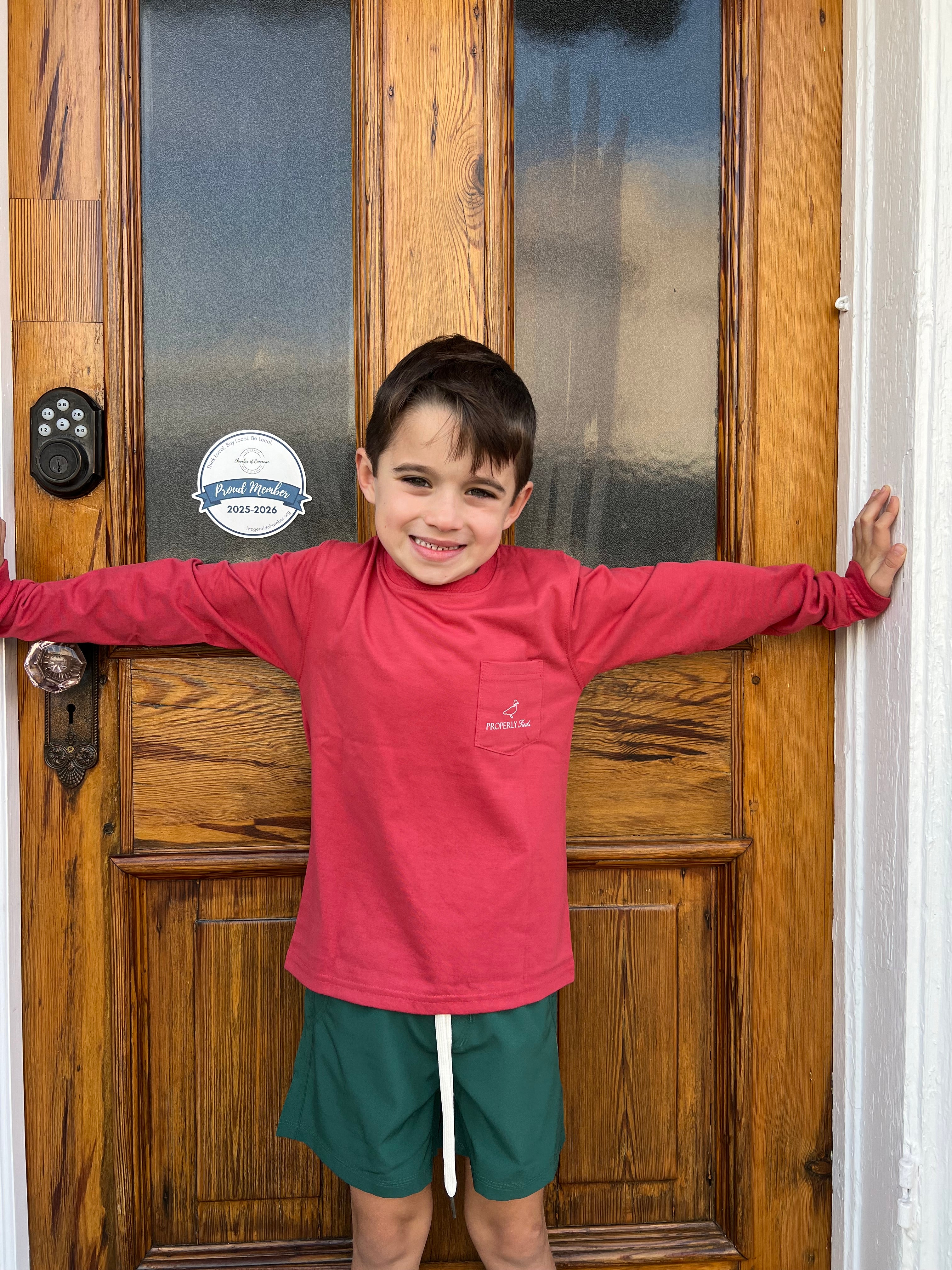 Dress your boy for the holiday season with the Boys Long Sleeve Deck the Paws in Cabernet. Crafted from 100% soft Pima cotton, this tee offers lasting comfort and durability for everyday wear. Its vibrant hand-drawn festive graphics won’t fade with washing, while the handy front pocket featuring the iconic duck logo adds a playful touch. Pre-shrunk and available in multiple colors, this long sleeve shirt is an ideal blend of style and holiday cheer.