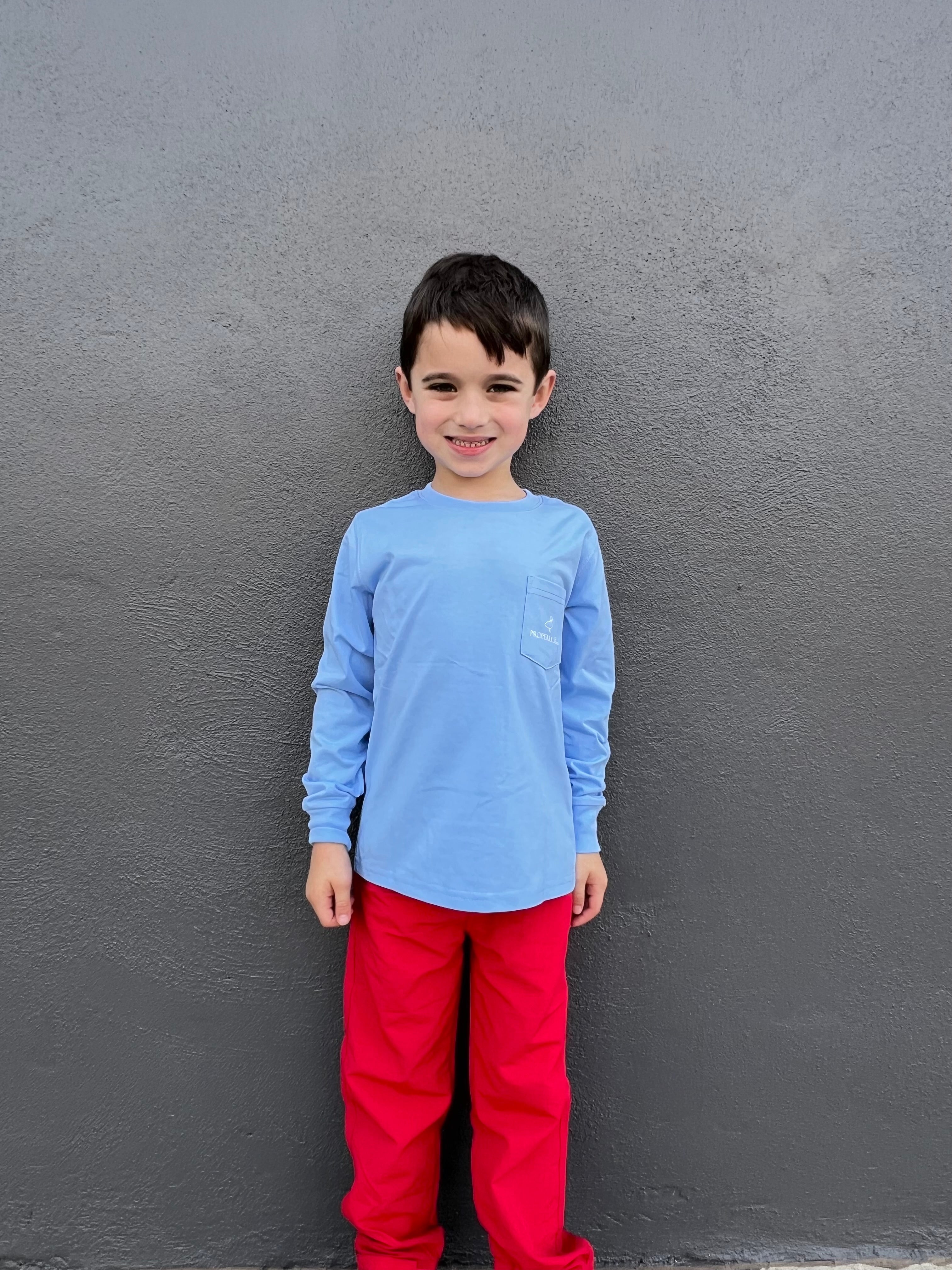 Crafted from 100% Pima cotton, this Boys Long Sleeve Reindeer Shirt in Light Blue offers exceptional softness and lasting durability, perfect for festive fun or everyday wear. Featuring hand-drawn, vibrant reindeer graphics that won’t fade, it brings holiday cheer with every wash. The front pocket, adorned with our iconic duck logo, adds a charming detail, making this pre-shrunk tee a must-have for your little one’s seasonal wardrobe. Available in multiple colors and designs, it combines comfort and style effortlessly.