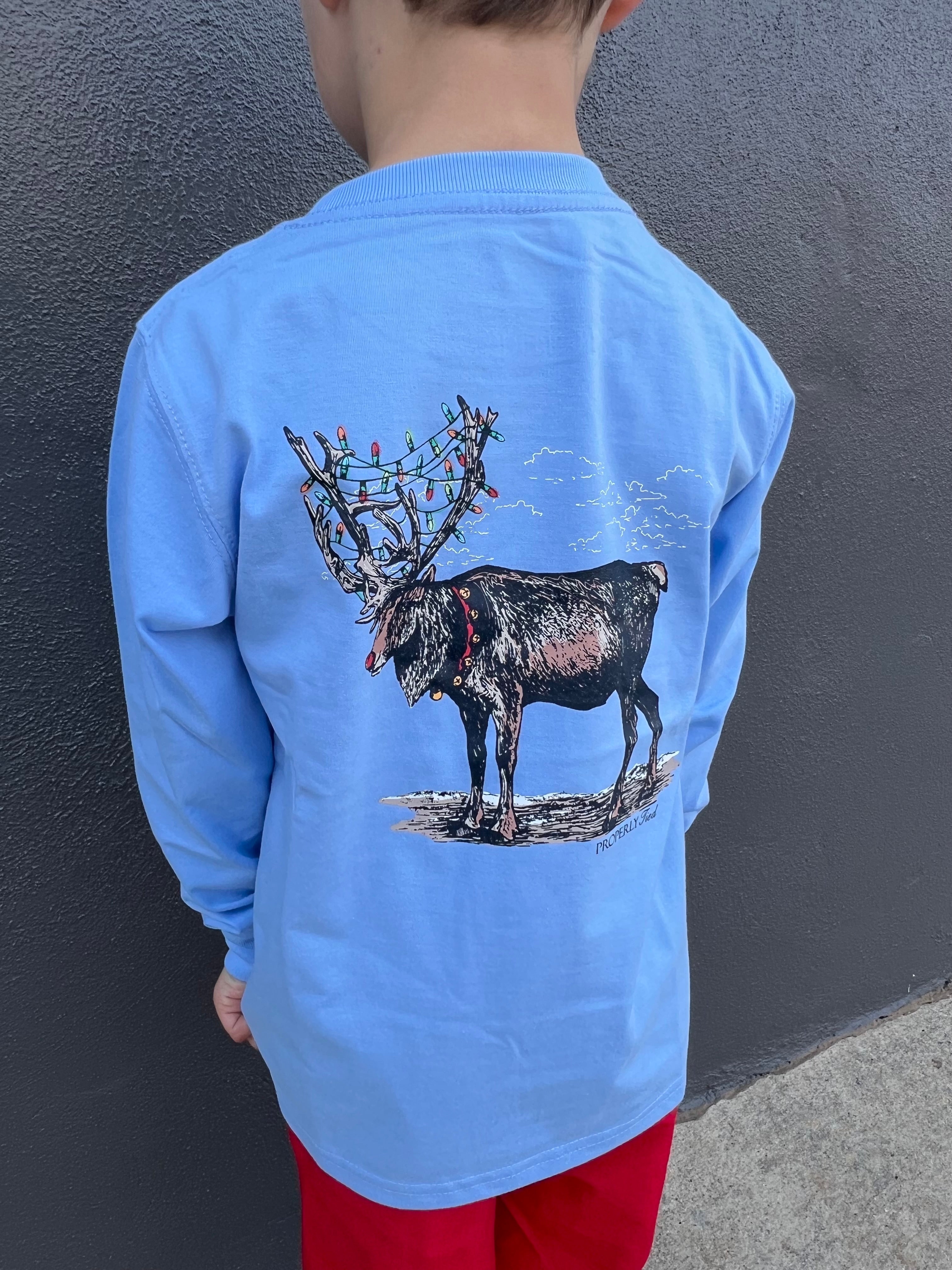 BOYS LS REINDEER SHIRT - LIGHT BLUE