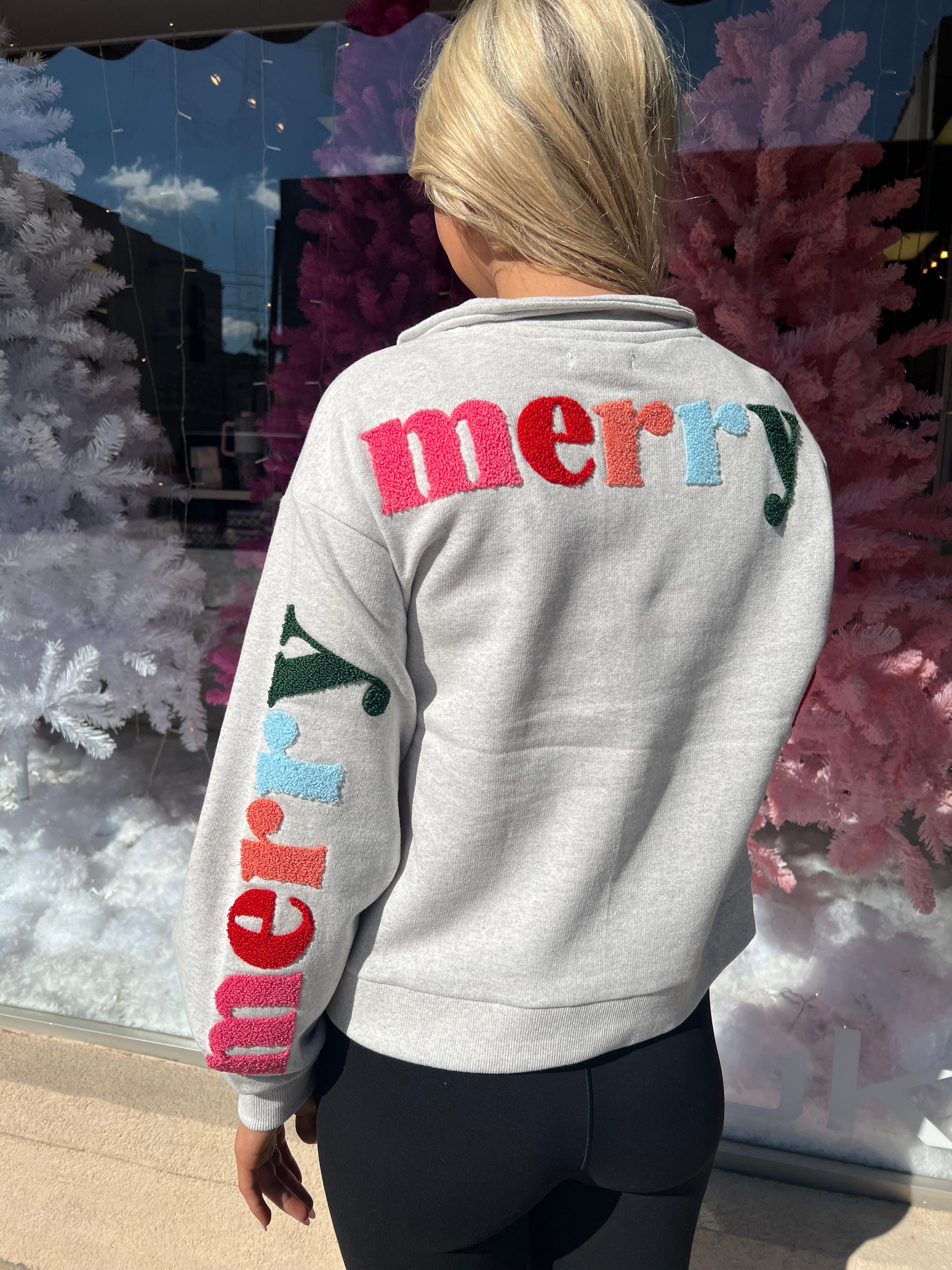GIRLS VERY MERRY SWEATSHIRT - GRAY