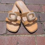 Elevate your style effortlessly with the Ring Around the Rosie sandals in rich Cognac. Designed for versatility, they glide seamlessly from casual days to elegant evenings. The wide 'H' strap, accented by a distinctive chunky metal detail, adds a refined touch, while the cushioned footbed ensures comfort all day long. Slip them on for stable, stylish steps that complement everything from breezy sundresses to tailored trousers. These sandals are the perfect blend of fashion and function, making them a must-have for any wardrobe.