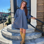 THE KATE DRESS - STEEL BLUE