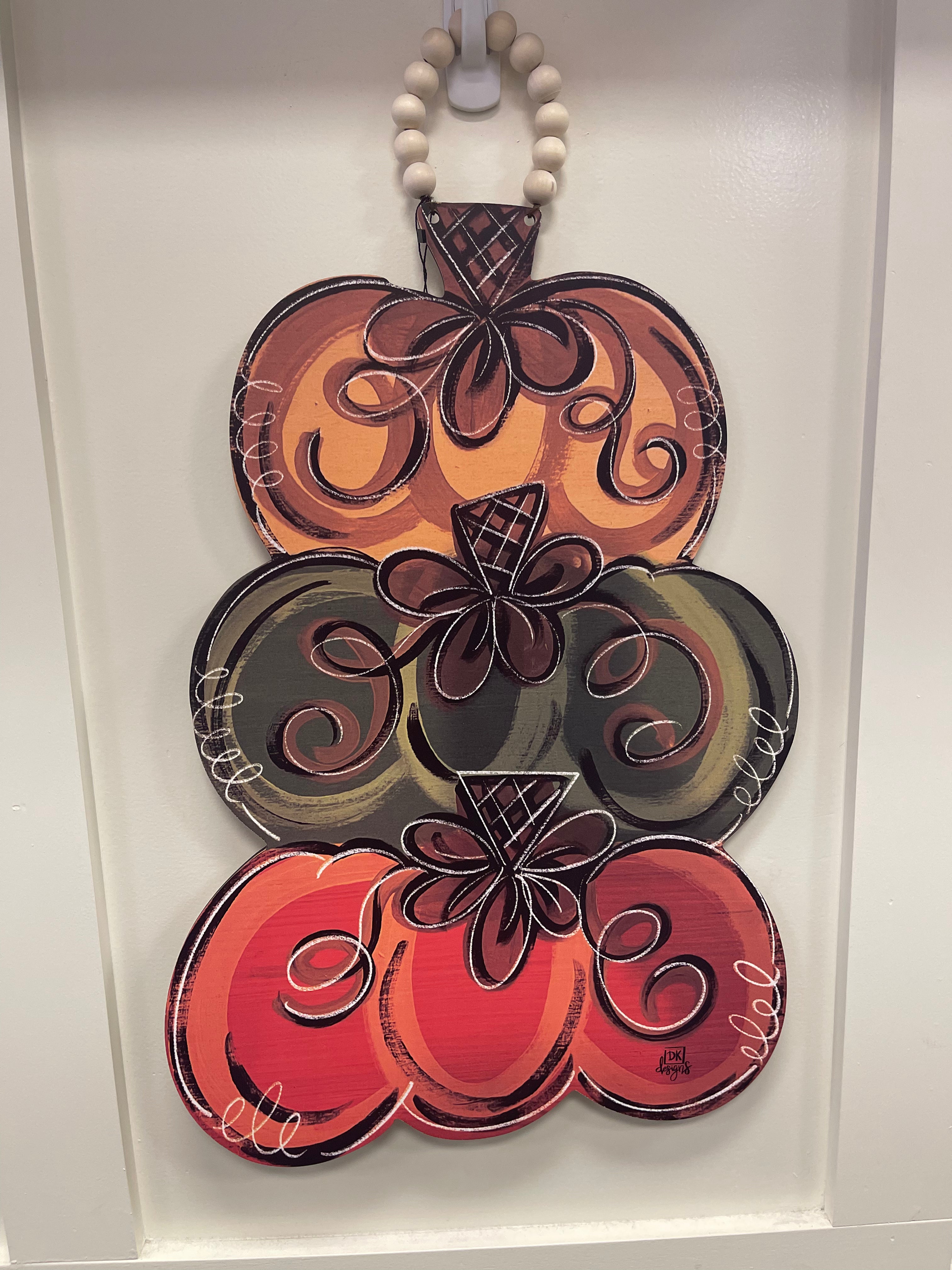 Introduce a touch of autumn to your home with the DK Pumpkin Stack door hanger! Our UV printed design on 1/4" MDF is durable and eye-catching, making it the perfect addition to your decor for the fall season. Welcome guests and embrace the changing season with this charming door hanger.