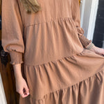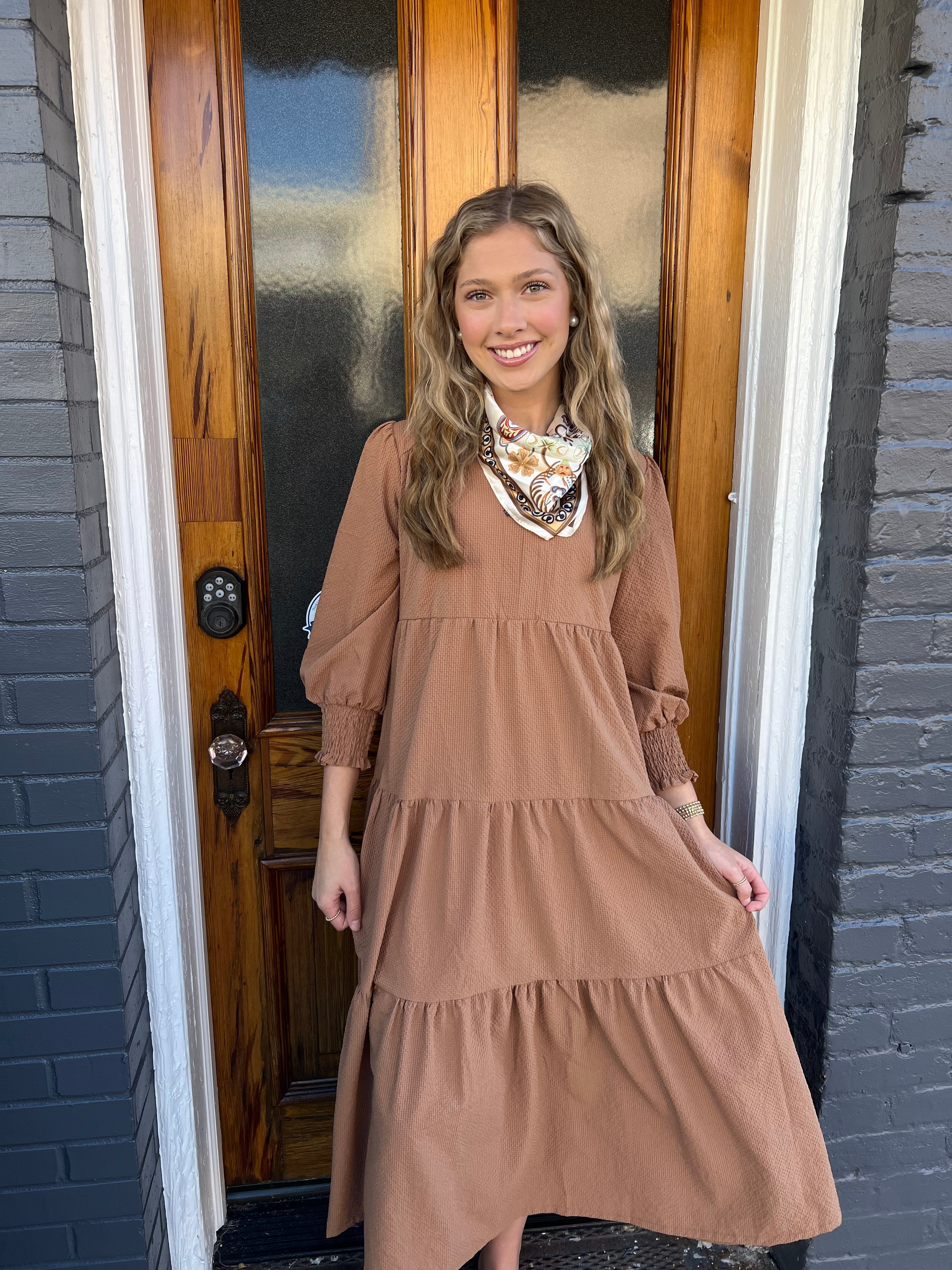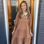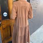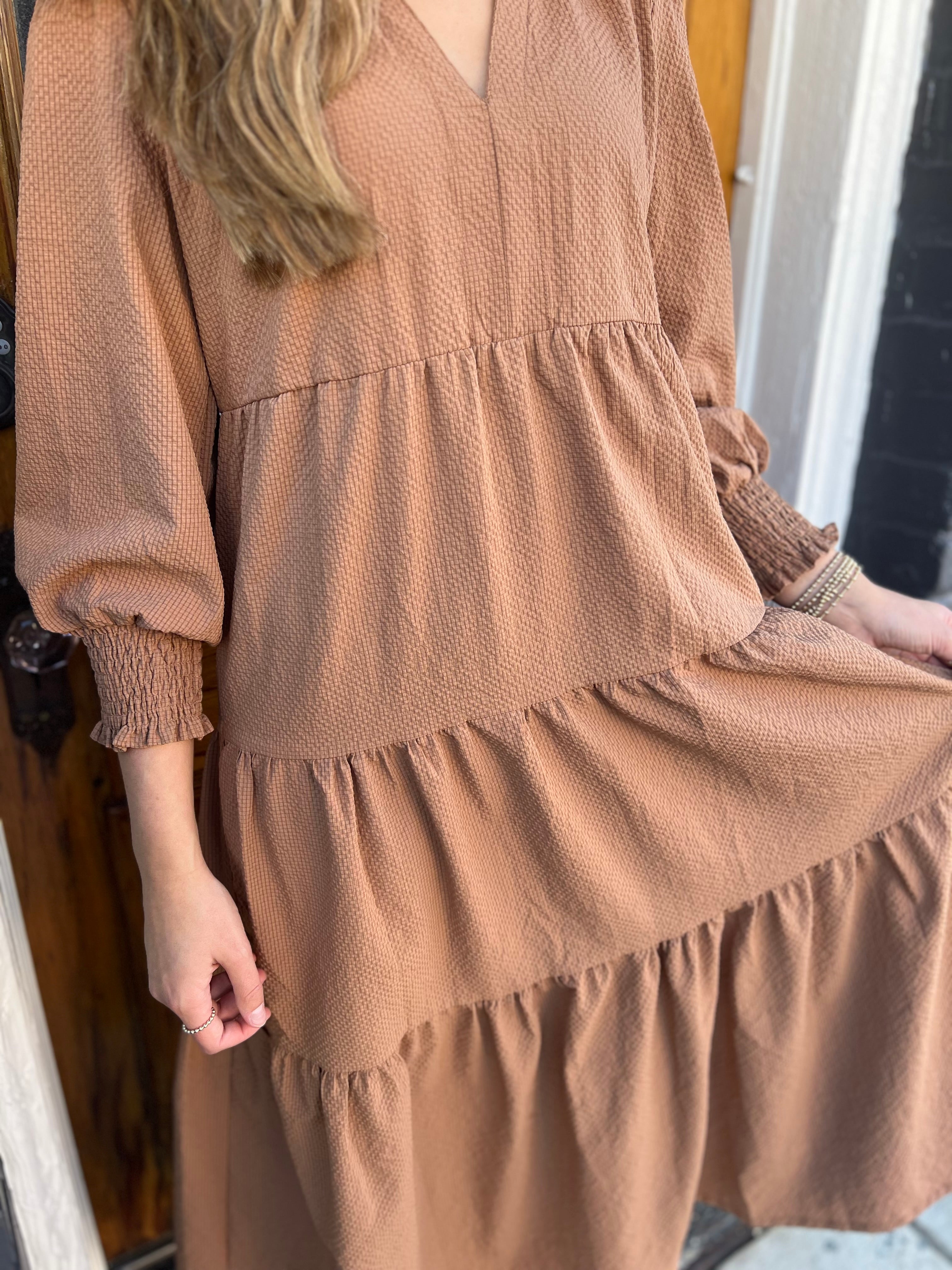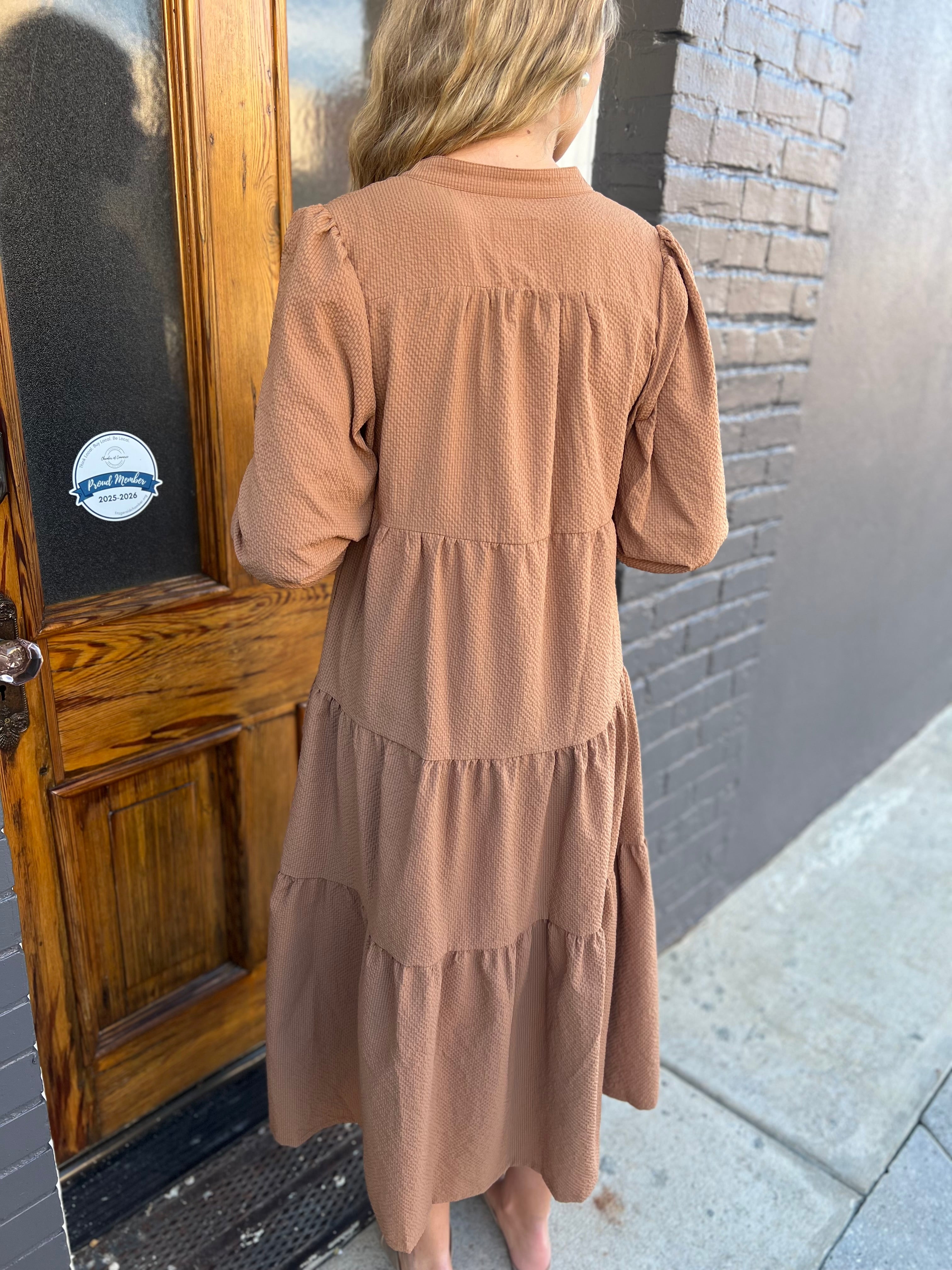 Elevate your wardrobe with the All Eyes On You Midi in Mocha. Crafted from textured fabric, this tiered midi dress features a stylish split neck that adds a subtle edge. Designed to flatter from sizes S to 2XL, it offers both comfort and confidence for any occasion. Make a statement effortlessly with this versatile, chic piece.