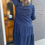 NAVY TEXTURED TIERED MIDI