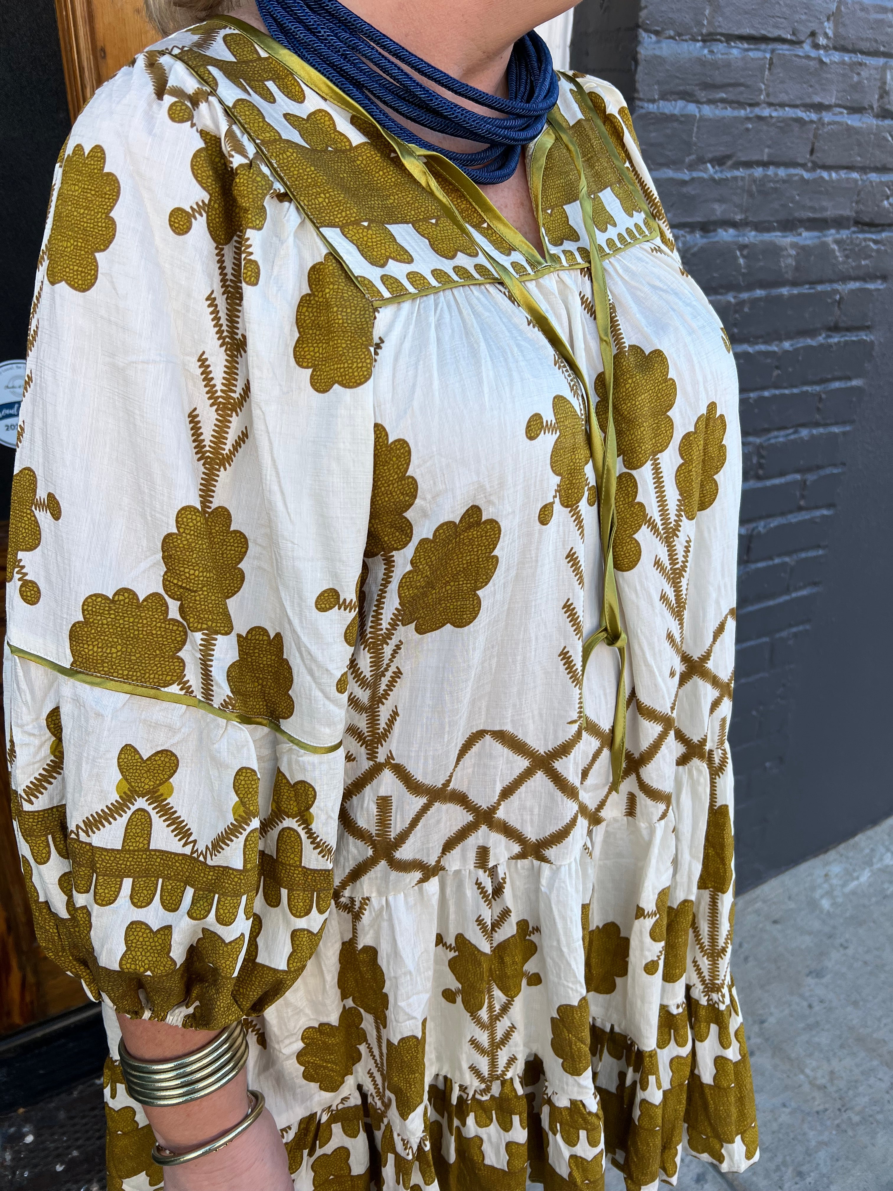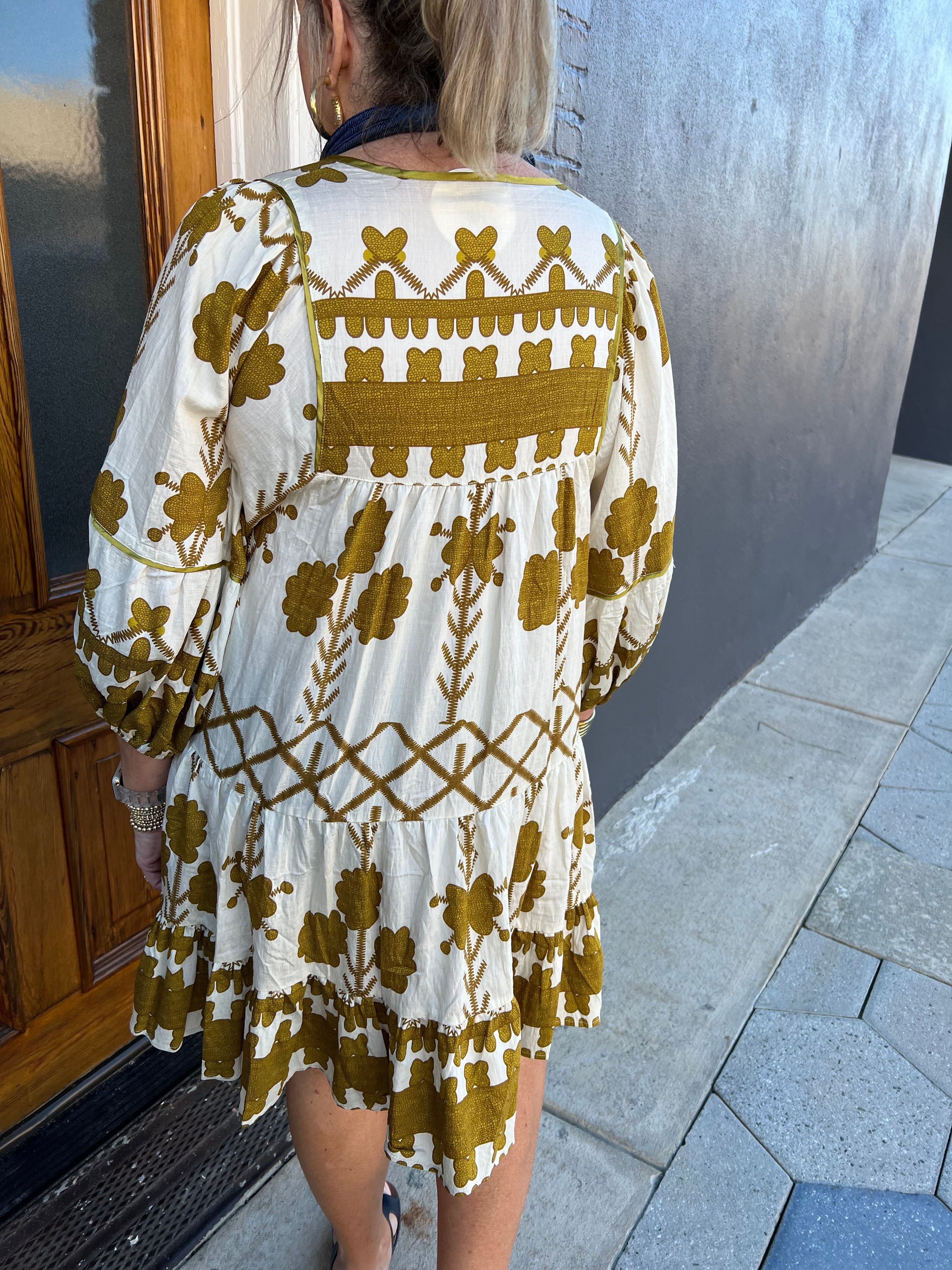 TRIBAL PRINT DRESS - MUSTARD GREEN