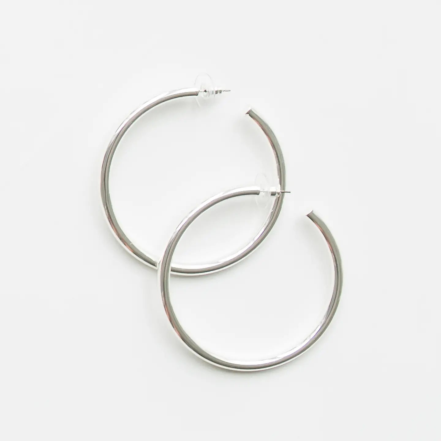 Introducing the Salem Earrings by Michelle McDowell. These brushed metal hoop earrings, measuring 2.5", are a blend of modern versatility and fresh design, always on-trend. Timeless yet bold, they're crafted to elevate your everyday style. Inspired by childhood memories of dressing up in grandmother's jewelry, these earrings are designed to imbue that same feeling of confidence and beauty. Enjoy the feeling of wearing a piece that is as unique as you are.