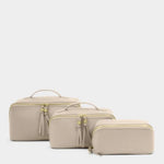 Keep your beauty essentials organized on the go with our Soho LARGE Make Up and Toiletry Bag in Oyster. Featuring a handy central divider, elasticated slip pockets, and finished with a golden charm tassel zip for a touch of luxe, it’s the perfect partner to our matching Soho Weekender Bag.