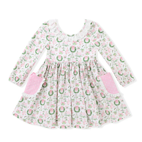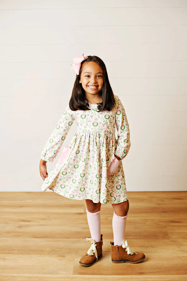 GIRLS CHRISTMAS DRESS PNK/GRN