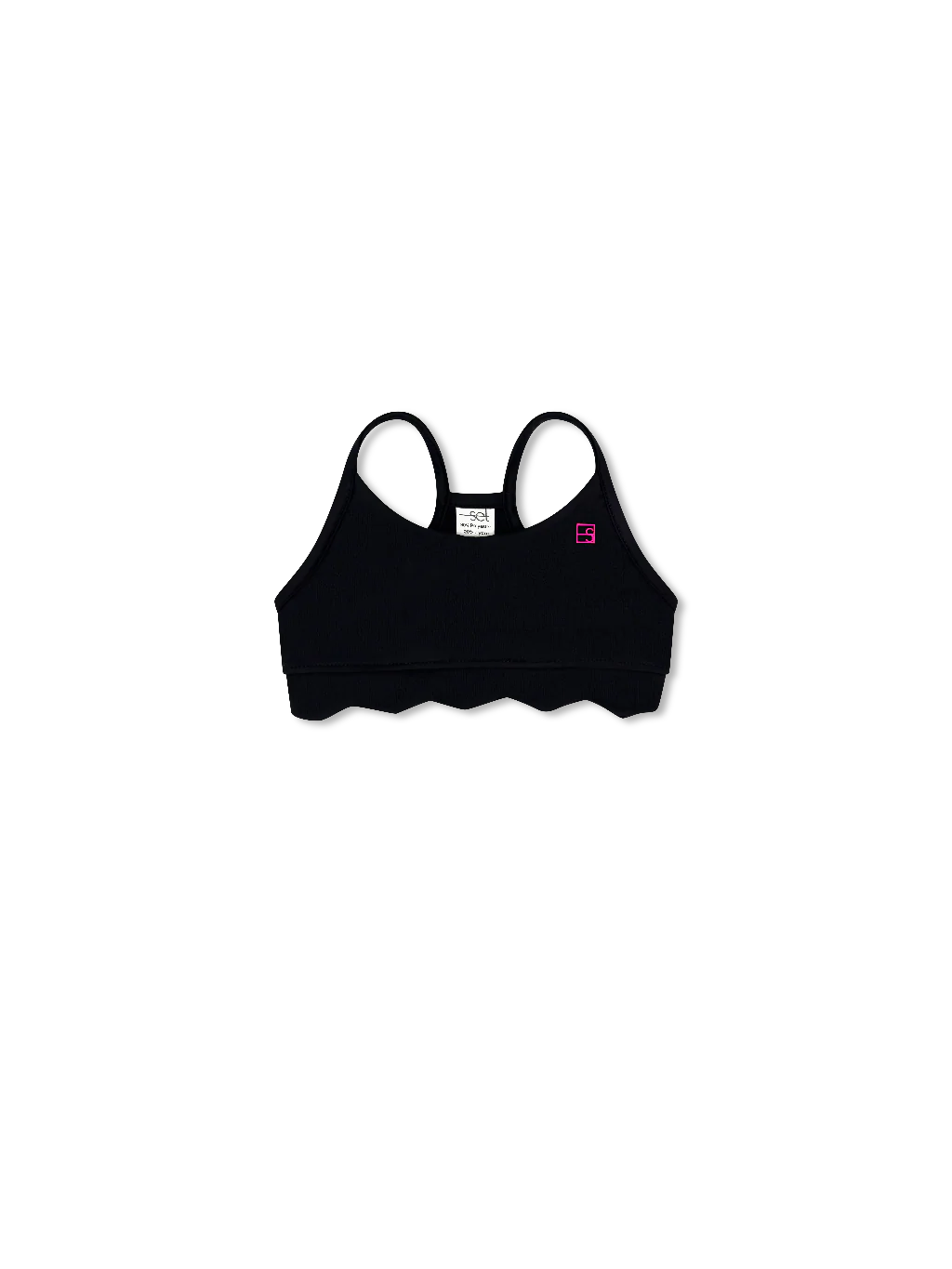 The Girls Bella Scallop Bra in Black combines stylish scalloped edges with soft, breathable fabric, ensuring your girl stays comfortable and confident all day. Designed for active days, it offers gentle support without sacrificing comfort—making it the ideal choice for play, sports, or casual wear. Elevate her everyday essentials with this perfect blend of cute and cozy.