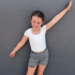 Black and white gingham shorts with front buttons, perfect for tweens. Comfortable and cute for gameday or everyday wear.