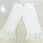 Unlock your creative spirit with JOJO Cropped Jeans! Crafted from white denim, these stylish jeans feature adjustable waistbands, plus tassel fays for a bold, playful look. Dare to be different and make a statement -JOJO Cropped Jeans!