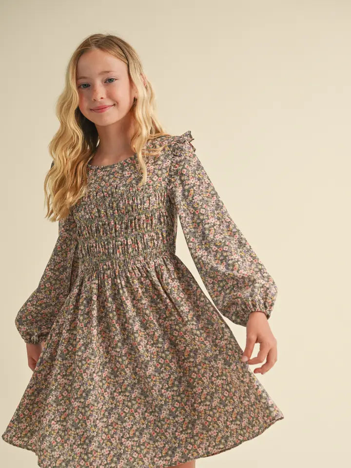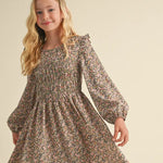 Introducing the effortlessly stylish Anna Beth Dress! This woven smocked front mini dress is perfect for tween kids girls, featuring a beautiful ditsy floral print. The long balloon sleeves add a touch of whimsy, while the smocking on the front chest provides a flattering fit. Complete with a back key hole button, this dress exudes charm and elegance.