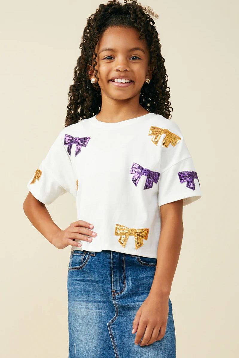 GIRLS GAMEDAY BOW T-SHIRT PUR/GLD