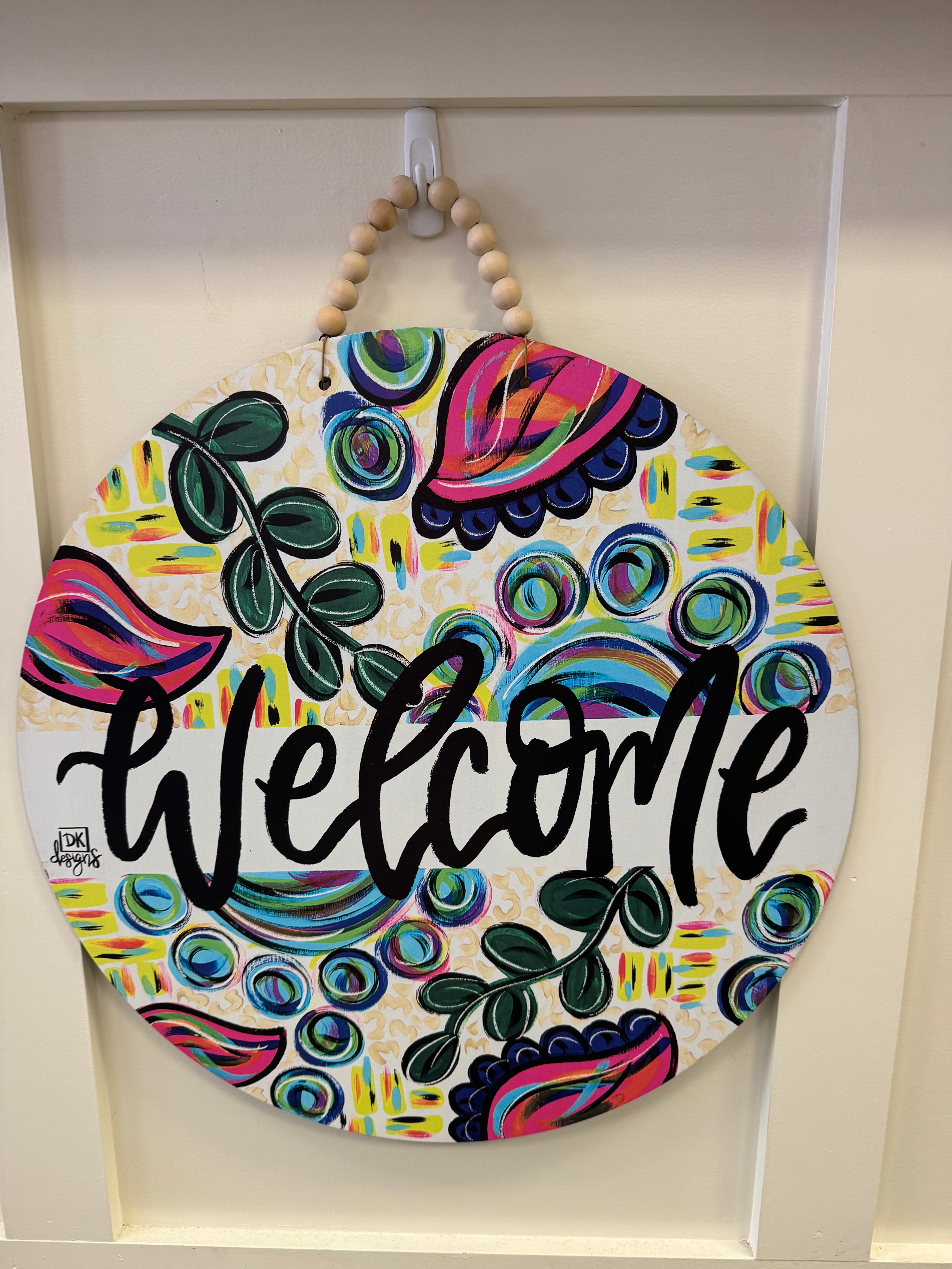 About DK designs: DK Designs began as a simple dream between a husband and wife team. This dream was to create beautiful, hand crafted door hangers, framed pieces, and wood creations to enhance and elevate all home environments. The division of labor is simple: Drew handles the wood cutting, framing, and business logistics while Kim designs, paints, and brings color to all she touches. Together, they believe in dreaming big and building a business who's creations thrill clients and inspire creativity that knows no limits.