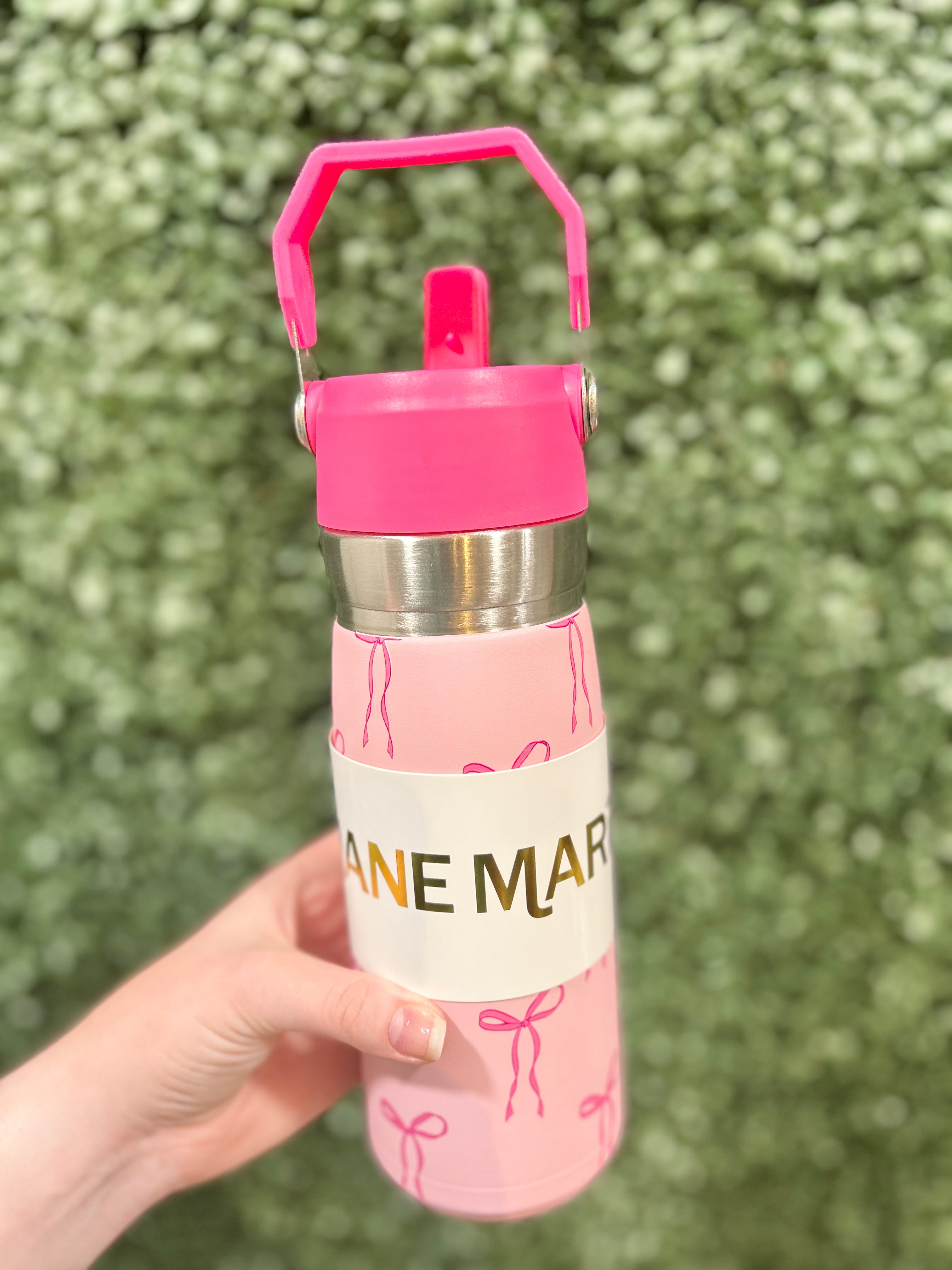 Stay hydrated in style with our 22 OZ TIED WITH A BOW water bottle in charming pink. The convenient straw cap makes sipping effortless, while the elegant bow design adds a touch of femininity to your everyday essentials. Perfect for the gym, office, or on-the-go hydration with a fashionable flair.