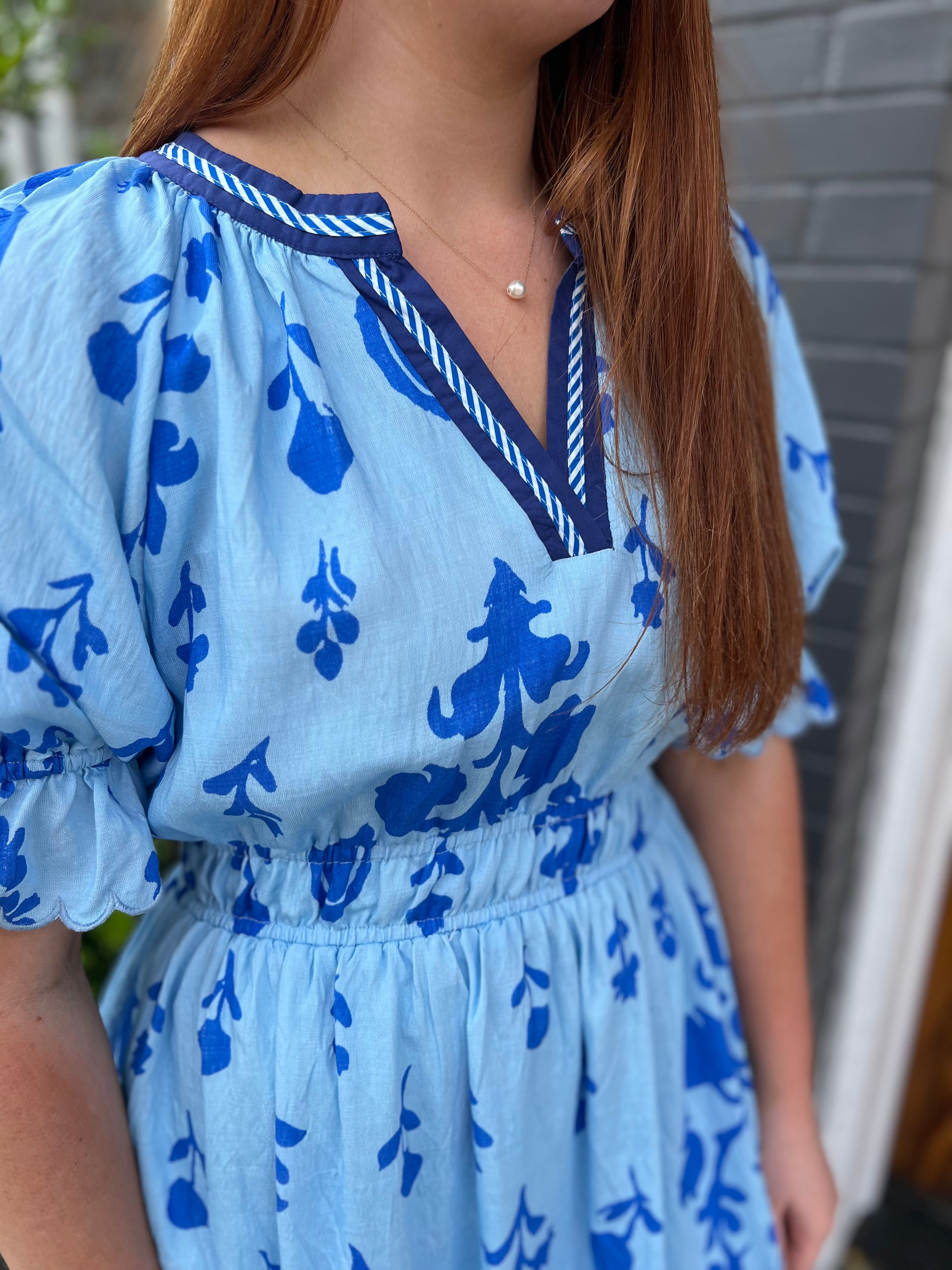 FLORAL BREEZE BABYDOLL DRESS - BLUE