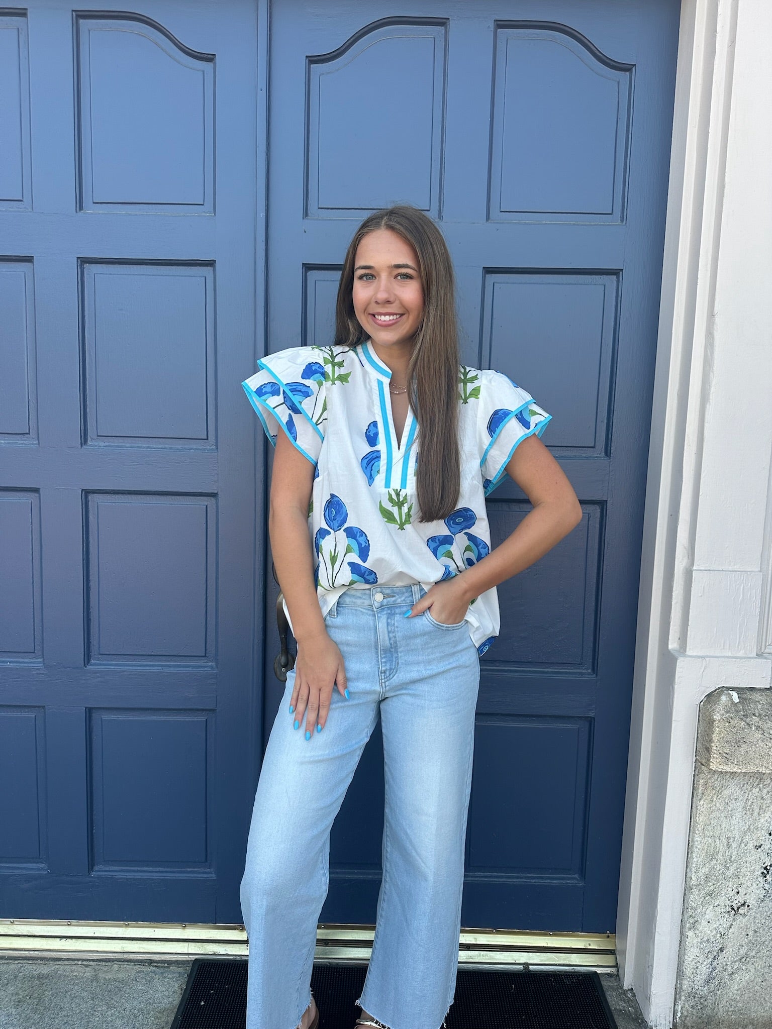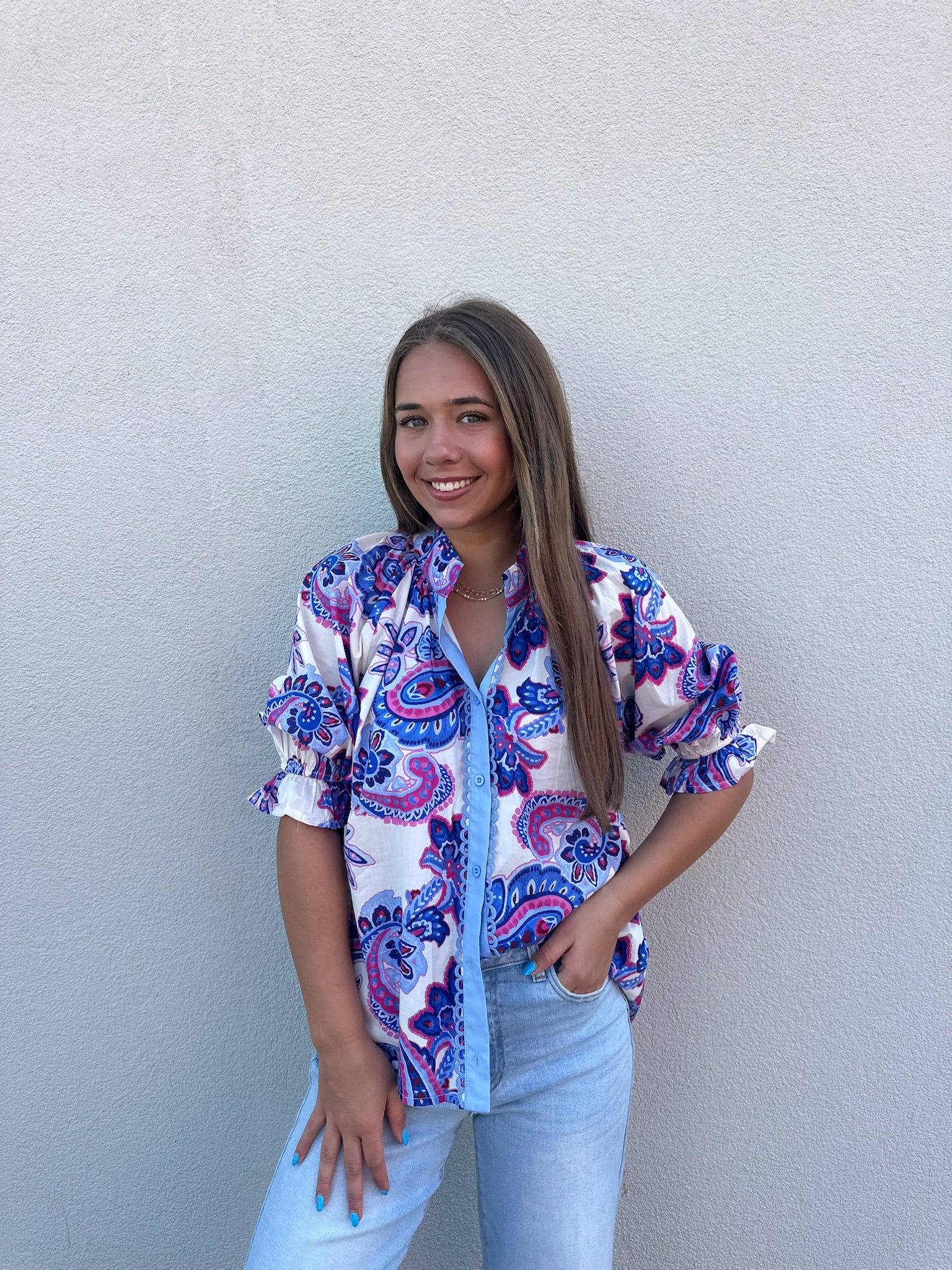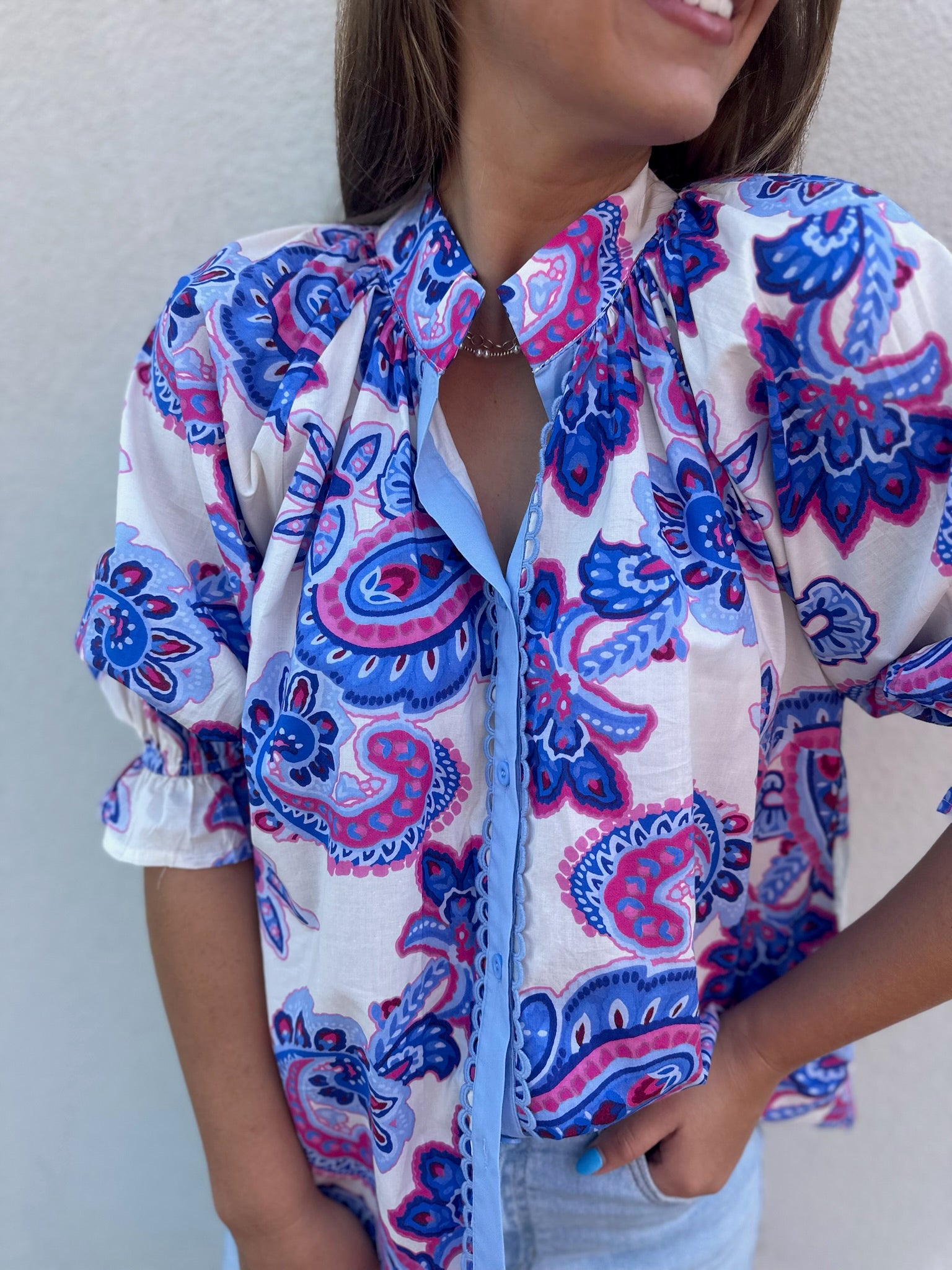 PAISLEY PRINT BUTTON FRONT TOP - OCEAN