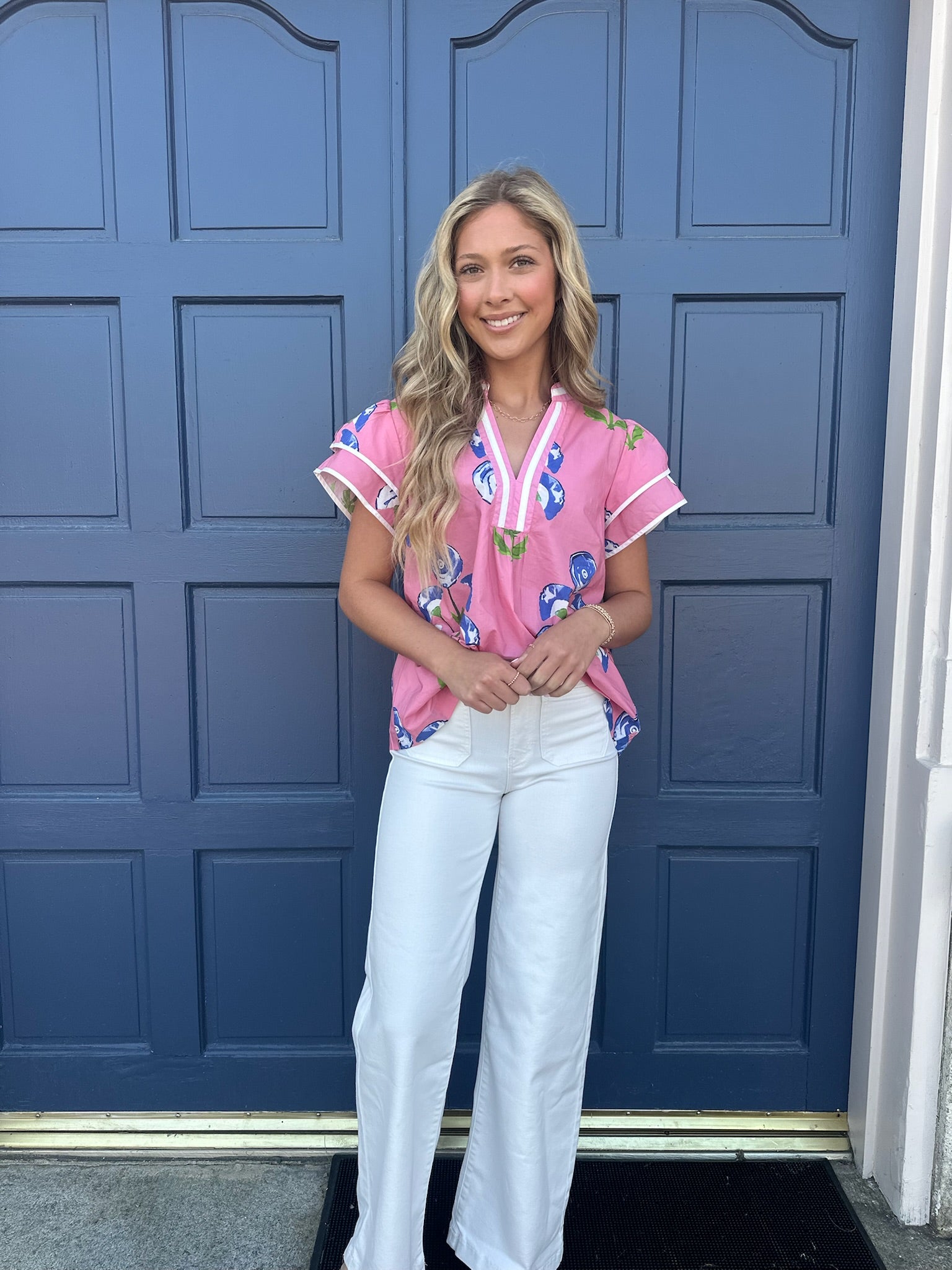 PINK BLOSSOM MEADOW PRINT TOP