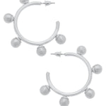 Elevate your style with our Allison Silver Hoops. These stunning earrings feature delicate ball beads for a touch of playfulness, adding a unique and elegant touch to any outfit. Made with signature satin silver, they exude sophistication and luxury. Complete your look with these must-have hoops.