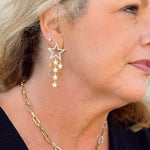 FIOANA EARRINGS BY VINTAGE HAVANA - GOLD HOOK STONE STAR WITH MINI GOLD STAR FRINGE