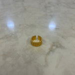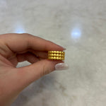 TRIPLE ROW OF MATTE GOLD DOTS FORM THIS HUGGIE HOOPS AND ADJUSTABLE RING