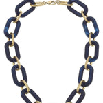 The Mallory Marbled Necklace elevates any outfit with its sophisticated navy marbled resin links. Perfect for both casual and formal occasions, this versatile piece is sure to upgrade your jewelry collection. Add a touch of elegance to your style with this must-have accessory!