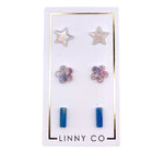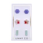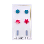 "Upgrade your earring game with the STUD TRIO BY LC! Our lightweight and durable LINNY CO jewelry is perfect for sensitive ears, made from 100% surgical-grade stainless steel and eco-friendly acetate. Each trio includes three stylish 12mm or smaller acetate studs with stainless steel posts. Say goodbye to discomfort and hello to stunning accessories!"