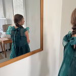 Looking for the perfect dress for any holiday occasion? Look no further than the Jane Holiday Dress by Mudpie! This chiffon baby doll dress features flutter sleeves, ruffle neck, and a large bow tie at the back, and has a fully lined bodice for added comfort. Perfect for all parties and even a wedding!