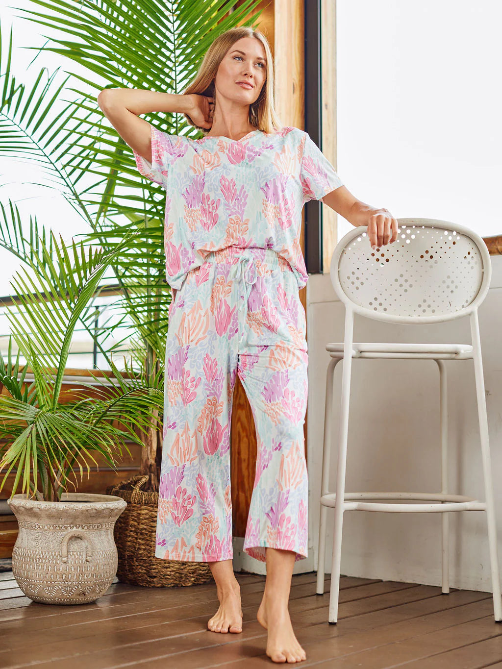 Unwind in luxurious comfort with the Alli Crop Pant PJ. Crafted from our signature ButterSoft fabric, this set includes a relaxed-fit top and cropped pants for the ultimate lounging experience. With short sleeves, V-neckline, and an elastic waistband with pockets and adjustable drawstring, it's the perfect blend of softness and style. Packaged with our signature ribbon, it's a must-have for a peaceful night's sleep.