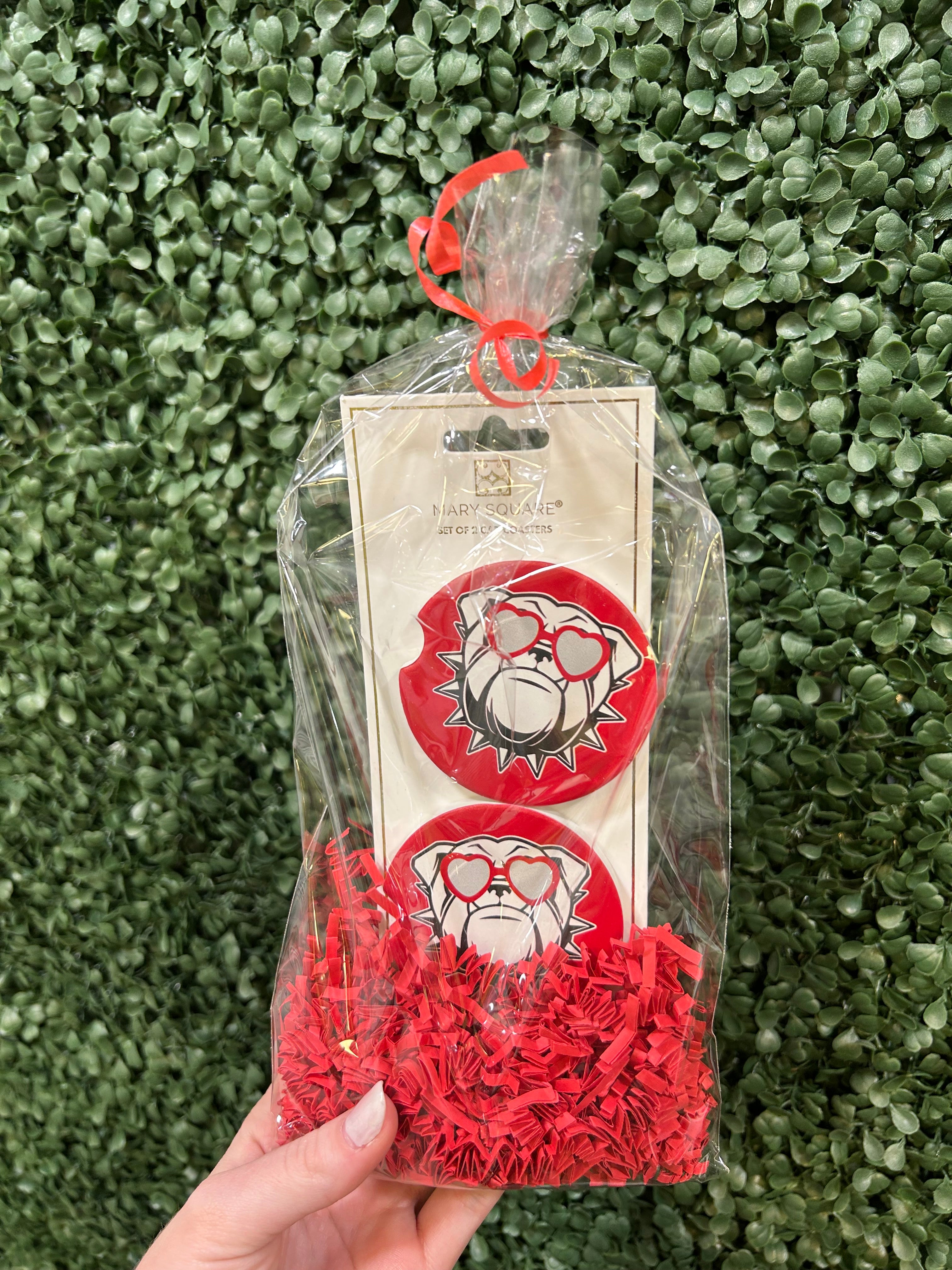 Elevate your car's appearance and show off your school spirit with our Car Coasters! Made of ceramic absorbent material, these coasters come in a set of two for double the fun. Make a statement while keeping your car clean and stylish.