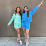 Update your loungewear with the chic and comfortable Lindsay Set. Made from our exclusive crosshatch jacquard fabric, this set features a stylish collared V-Neckline, long sleeves with cuff details, and convenient pockets. The drawstring waistband, complete with gold end caps, allows for a customizable fit.