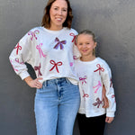 Elevate your seasonal wardrobe with the Millie Sweatshirt, featuring delicate sequin-embroidered bow designs that add a touch of sparkle. This cropped sweatshirt combines full-volume sleeves with a relaxed fit, delivering both style and comfort. The soft terry interior keeps you cozy, making it ideal for romantic outings or relaxing evenings at home. Crafted from a blend of polyester, rayon, and spandex, it offers gentle stretch and durability for all-day wear. Make a charming statement while feeling effortlessly comfortable with this unique piece.