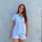Introducing the Serena Hydrangea Set, the newest addition to our dreamy PJ family. Crafted with lightweight and breathable Dreamlite fabric, this charming V-neck set, featuring delicate buttons and delightful pastel prints, promises to enchant and keep you cool at night. Experience the magic of the Serena Set now!