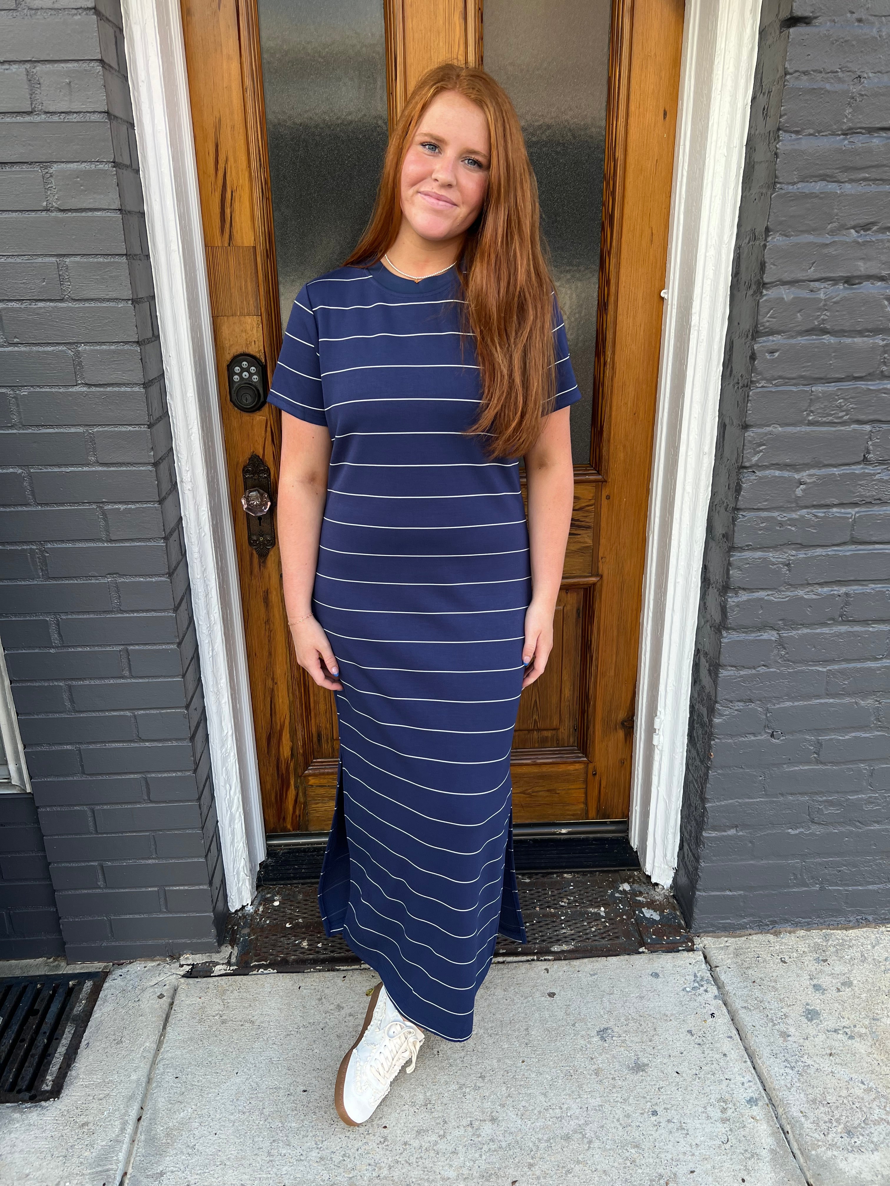 MODAL STRIPE MAXI DRESS - NAVY/CRM