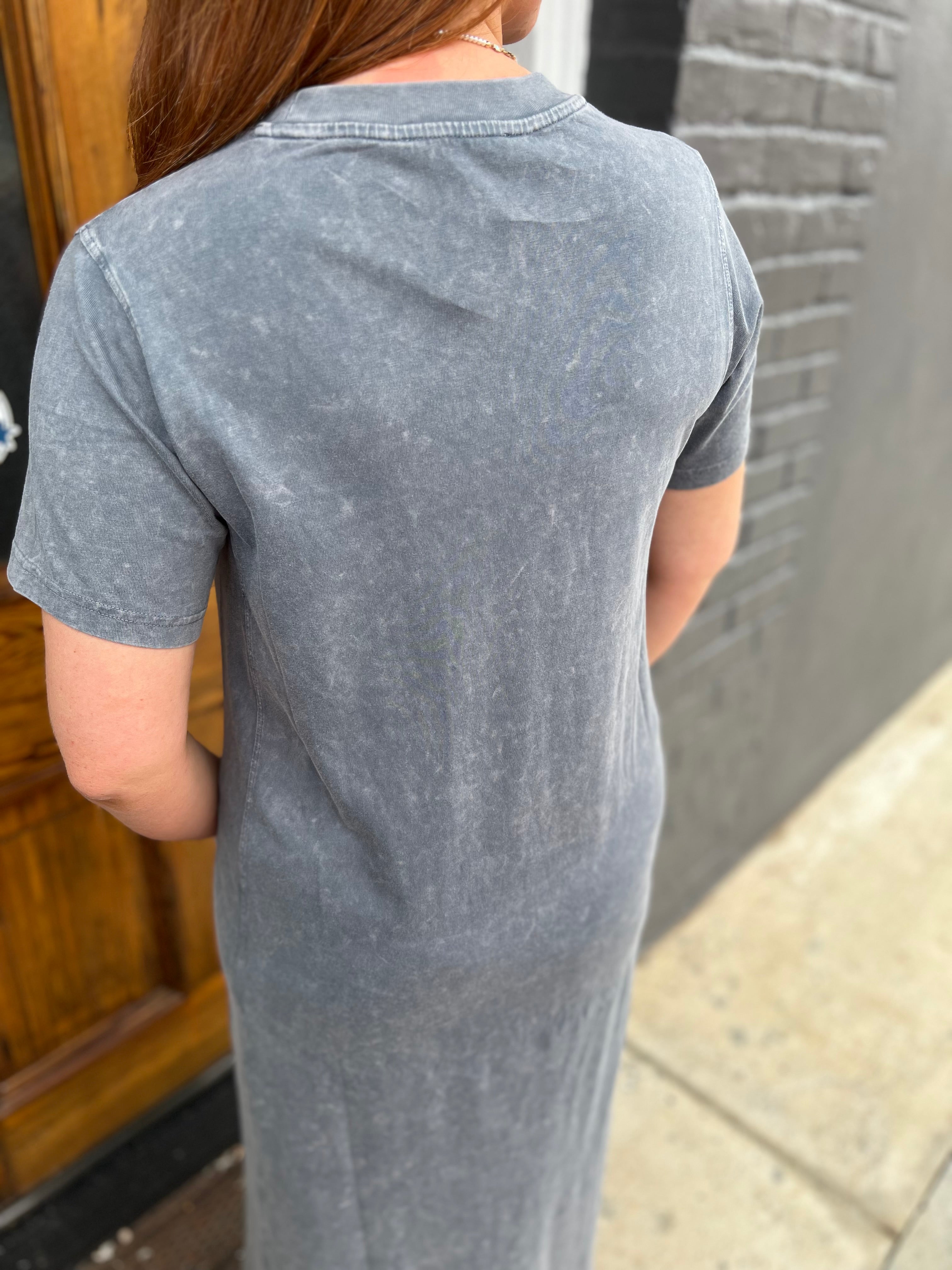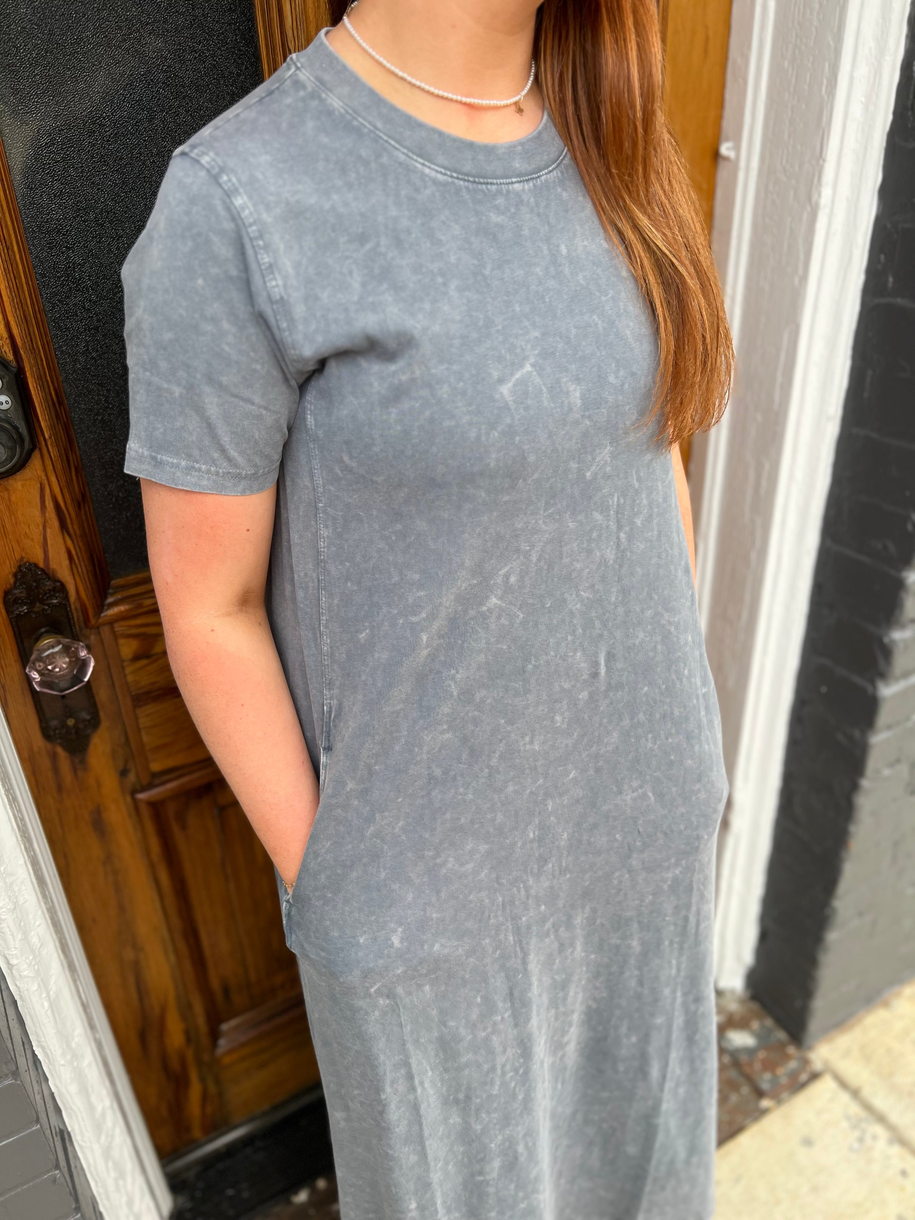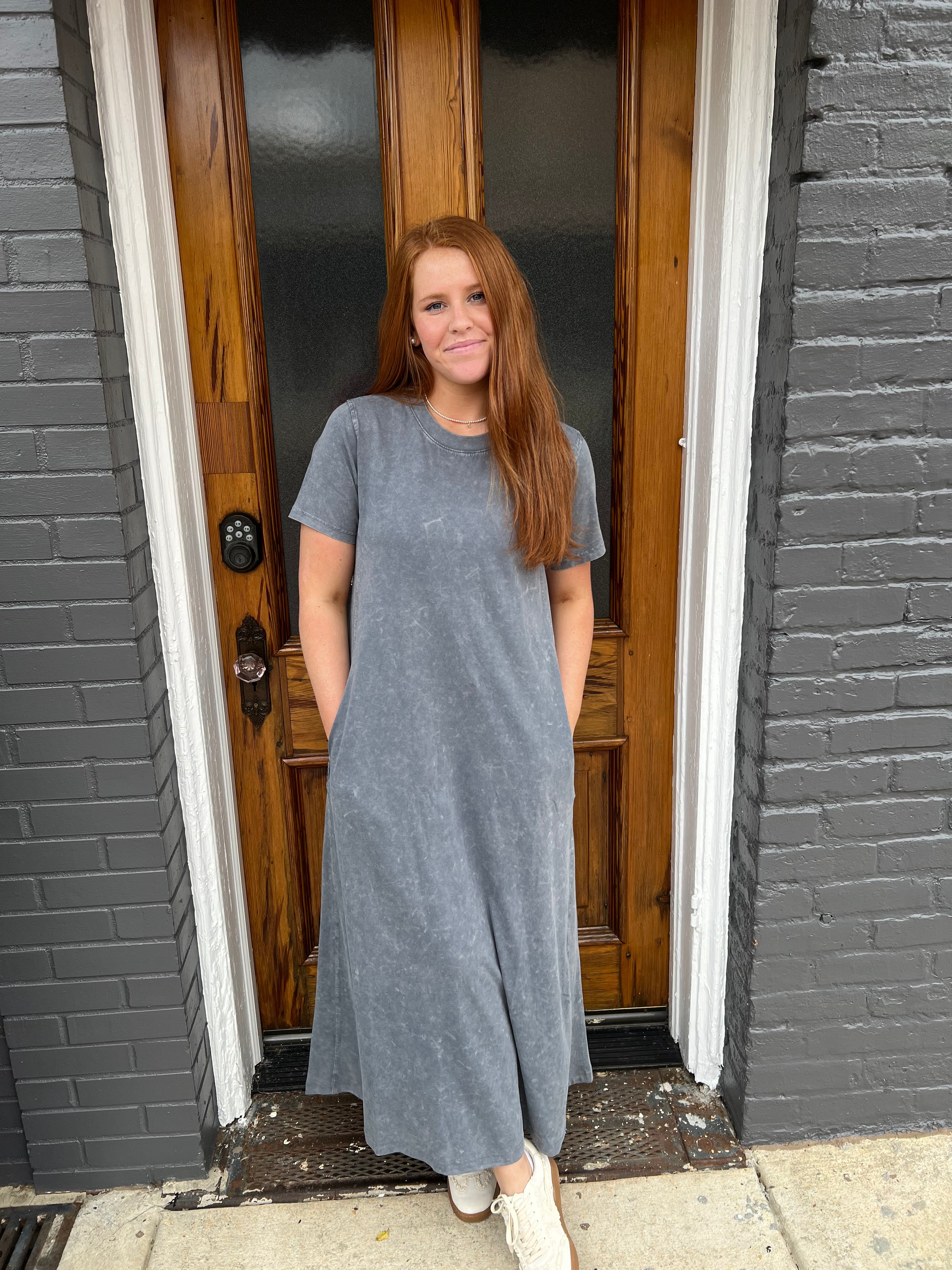 This mineral-washed cotton maxi dress offers soft comfort and a relaxed fit. Its flowy, ankle-length design with side pockets makes it perfect for casual, stylish days. Made from breathable 100% cotton, it’s easy to wear and effortlessly chic.