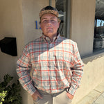 Cason is 5'10", size XL shirts, size XL/38 in pants, and wearing a large.
