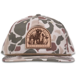 Locked on a covey and steady as stone — this camo roper hat features a German Shorthaired Pointer mid-point on a quail. Built for bird dog lovers and upland tradition keepers, it’s a cap that honors the hunt before the shot.