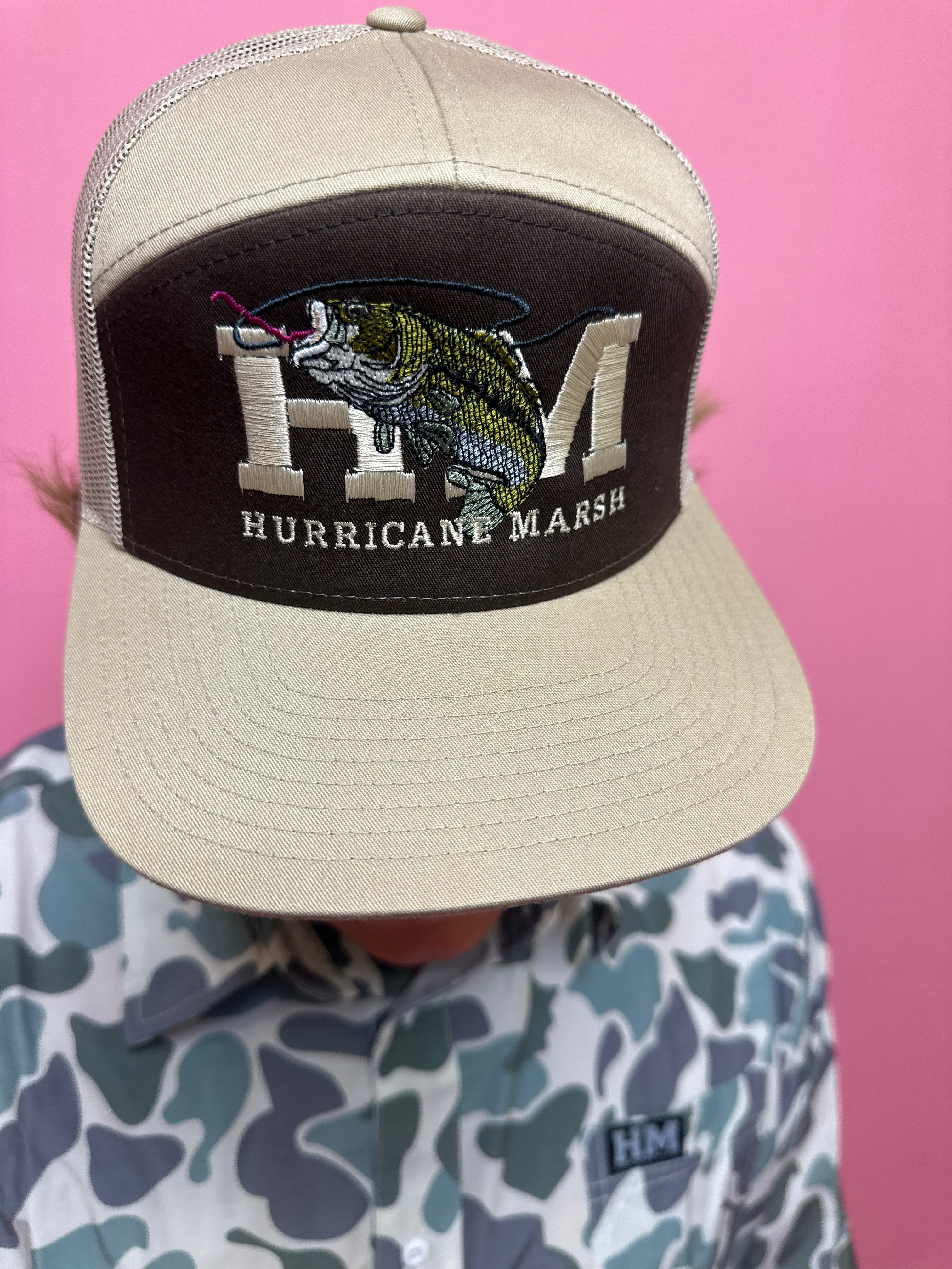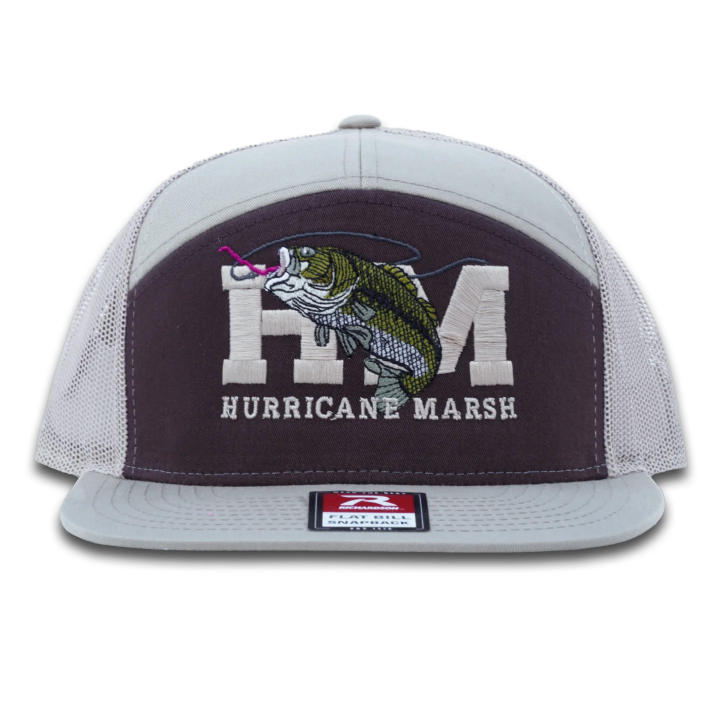 Introducing the Bass Richardson 7 Panel Hat, designed for avid bass fishers. This cap was made for anglers. Our HM Bass logo embroidered on a Richardson 168 with our all new bass logo, this hat ensures comfort and durability while out on the water.