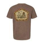 Embrace the thrill of the hunt with the In the Tall Grass Espresso Tee. Featuring striking outdoor-inspired artwork of a bird dog ready and pheasants taking flight, this tee brings the wild to your wardrobe. The camo border adds rugged style, while the clean logo keeps it sharp. Perfect for early mornings in the field, it’s designed for those who live to experience nature’s rush firsthand.