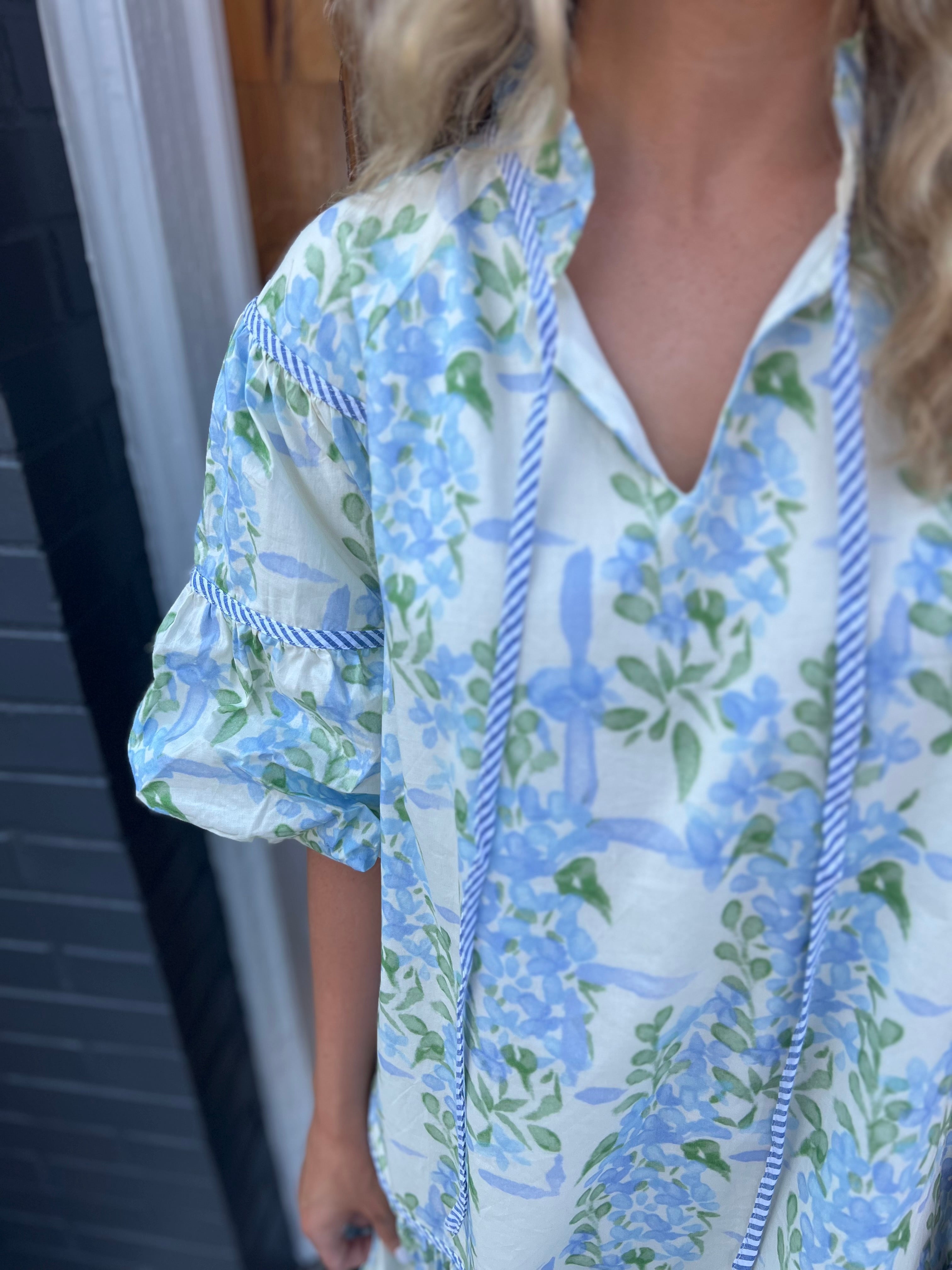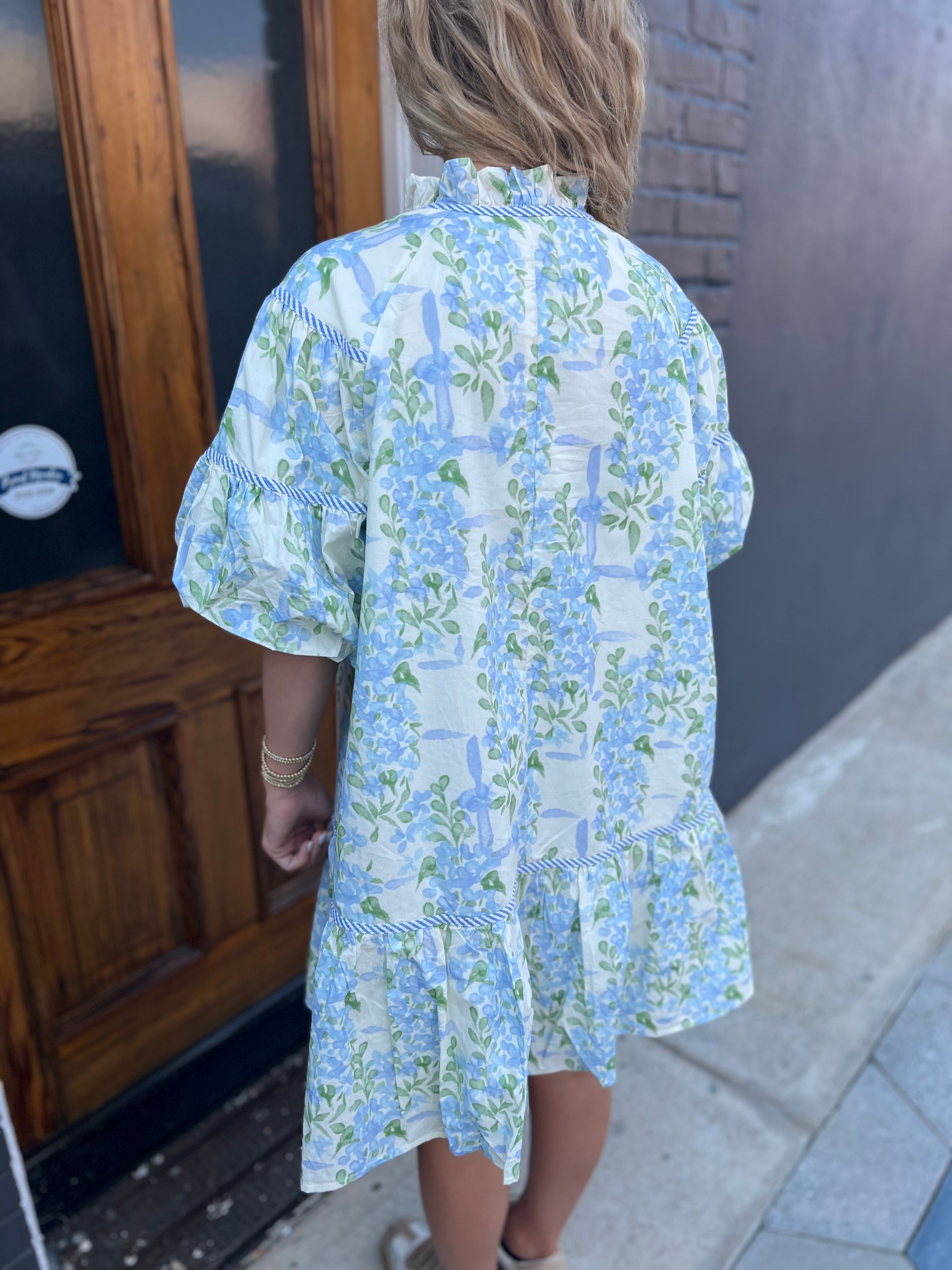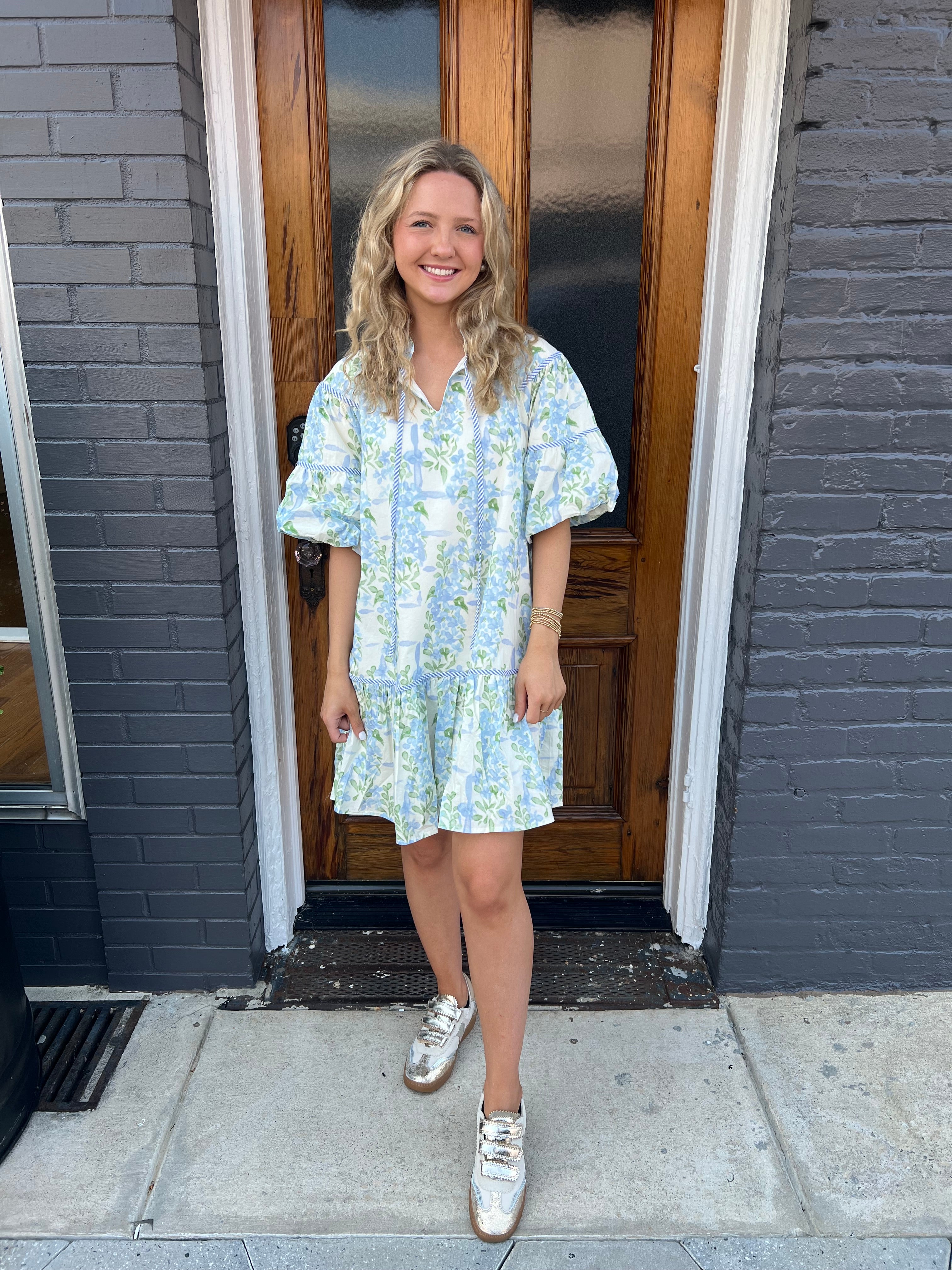 FLORAL BREEZE BABYDOLL DRESS - BLUE